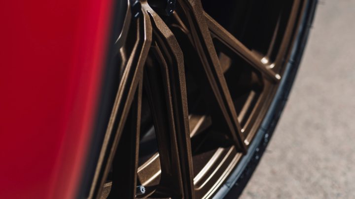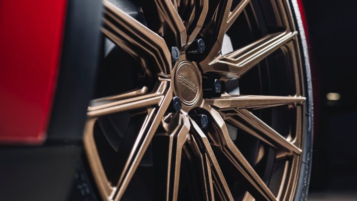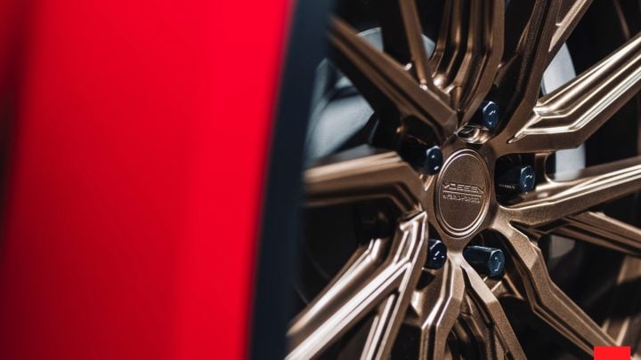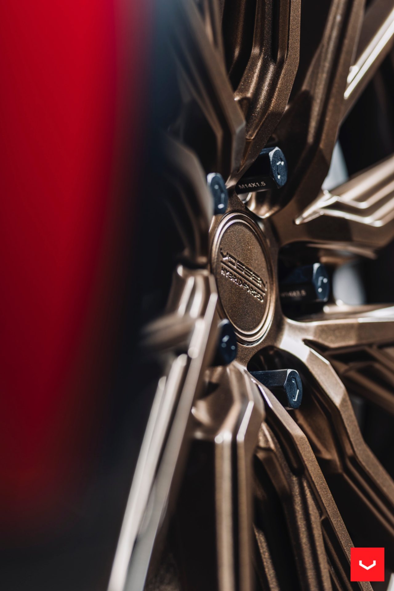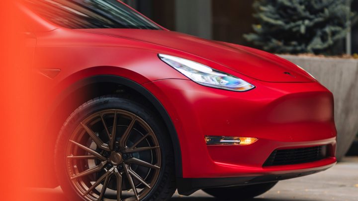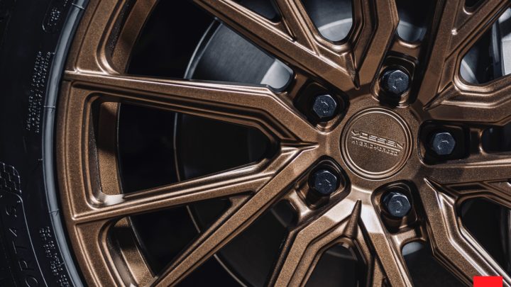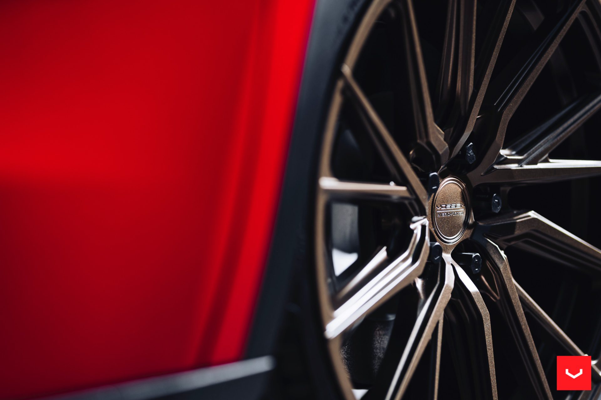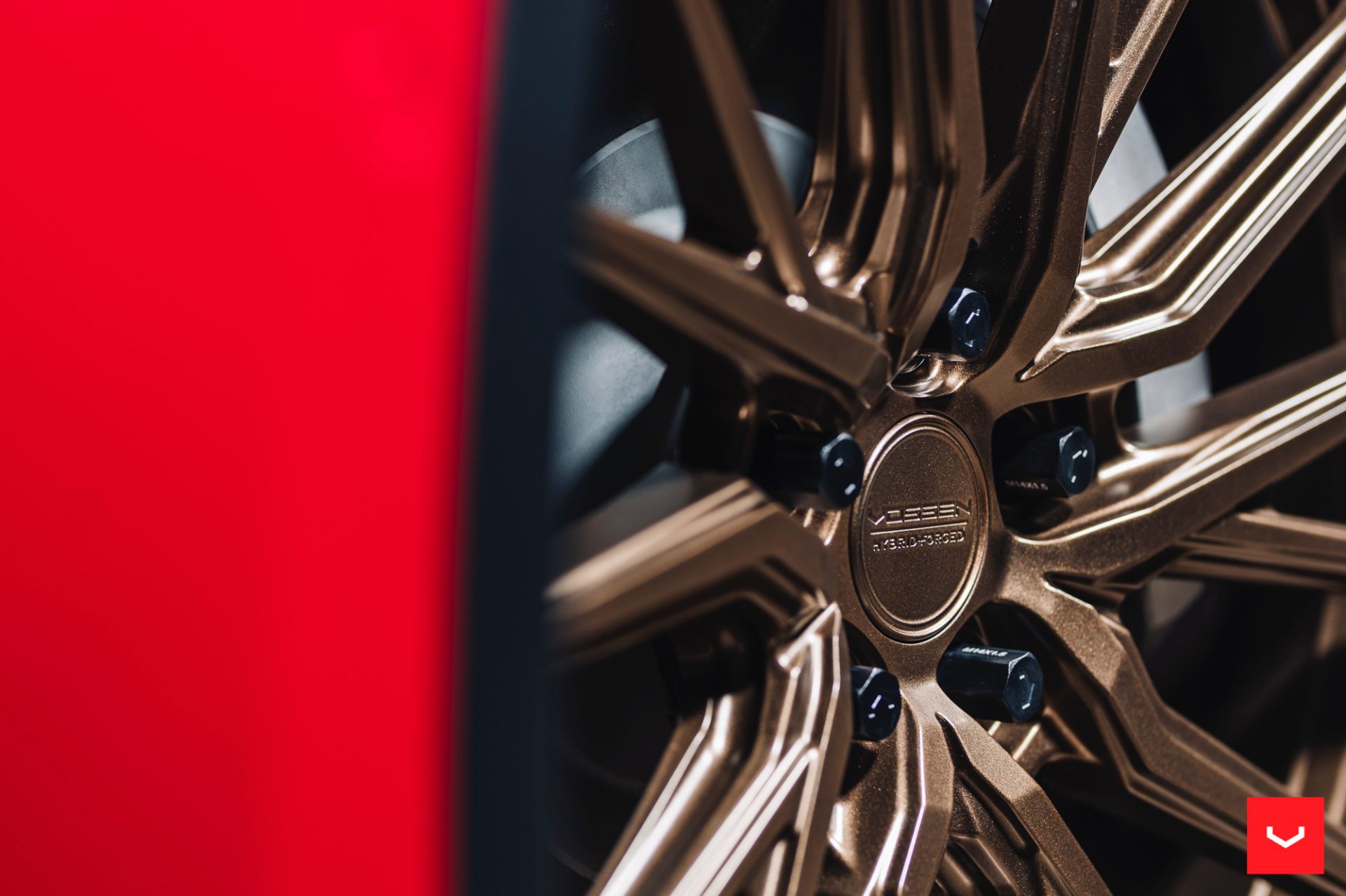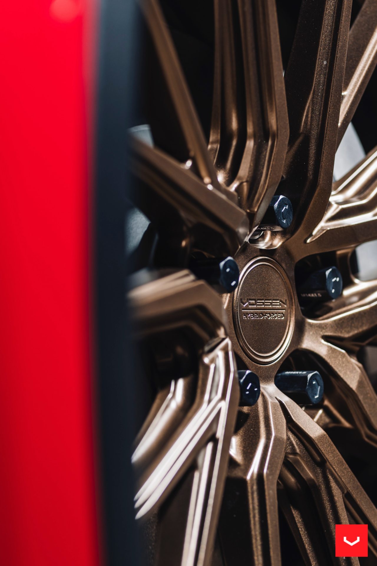 Red Tesla Model Y – Vossen HF-4T Wheels in Satin Bronze