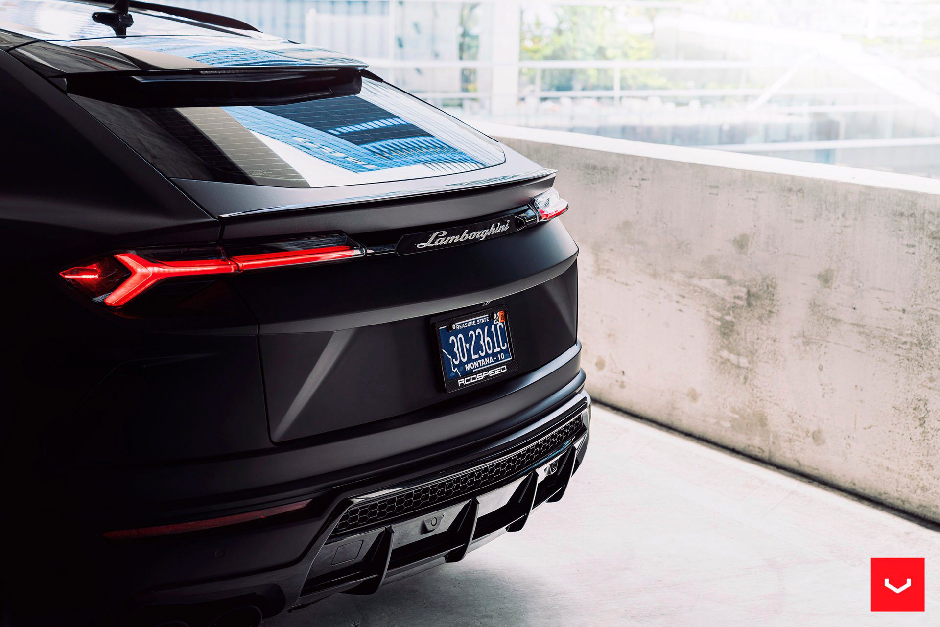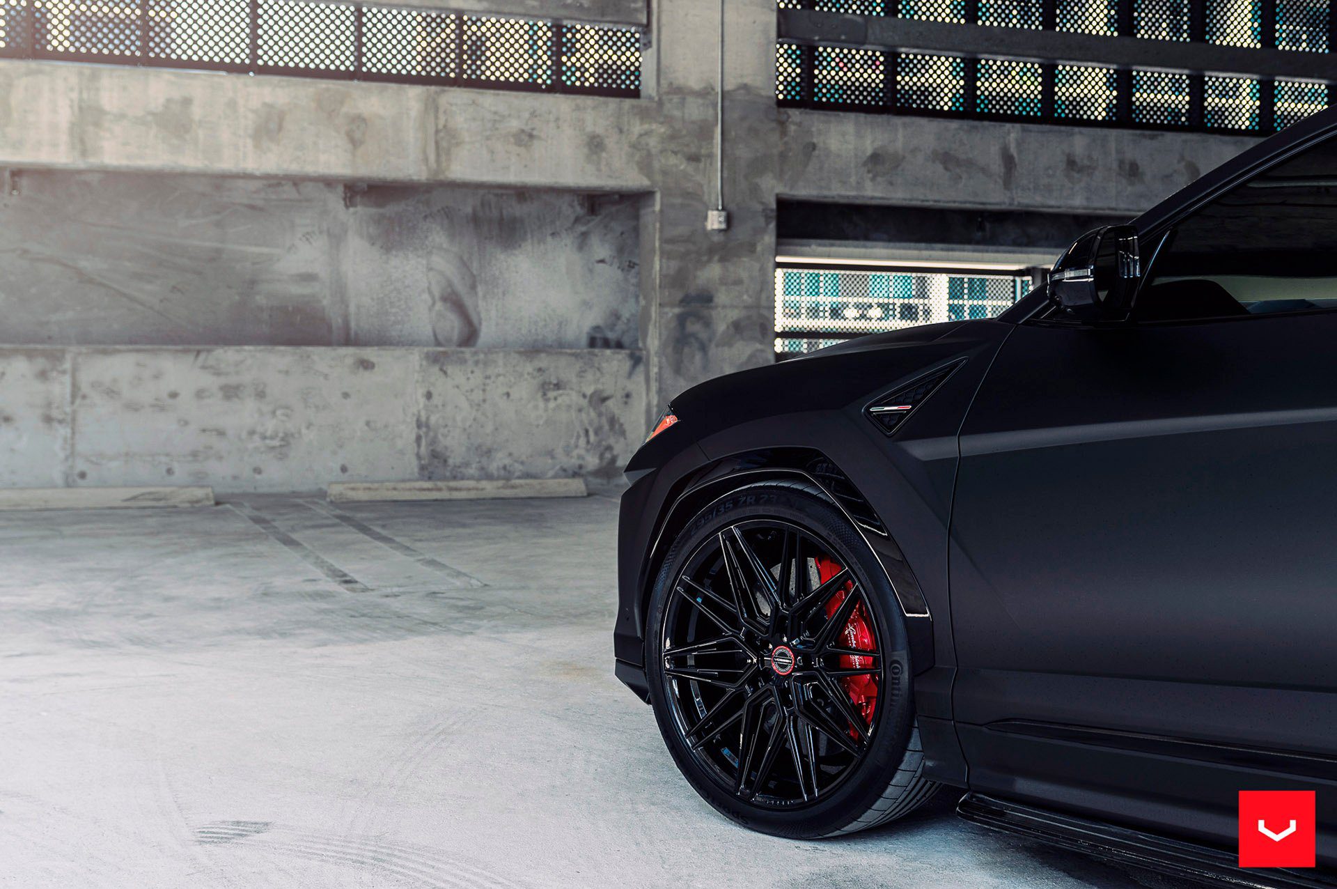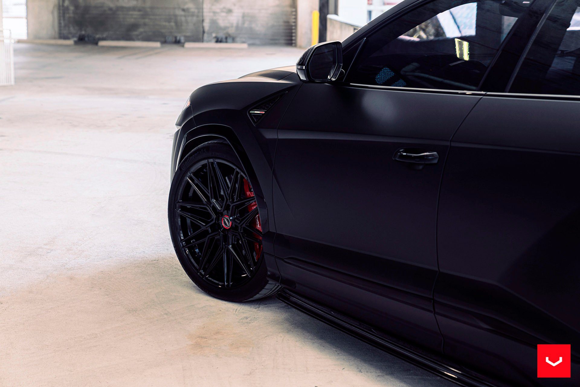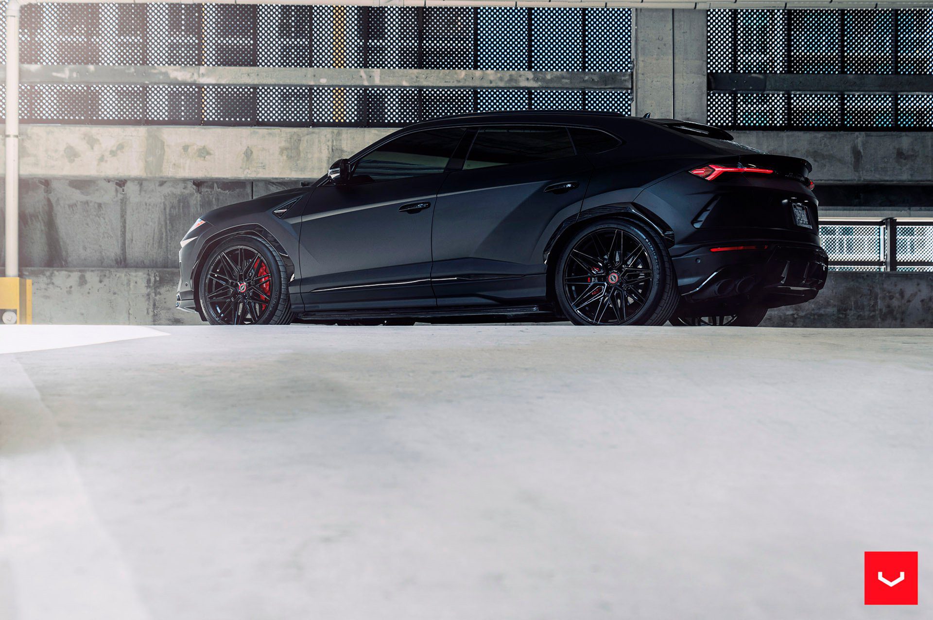 Coming from Vossen Wheels, the Florida wheel powerhouse, this particular vehicle features a gorgeous matte black exterior finish, giving the beefed-up lines of the Italian supercar SUV a great outlook. This specific Lamborghini Urus is adorned with Vossen Hybrid Forged Series HF-7 wheels, accentuating its exterior even more. Sized in a staggering 23×12 sizes in the front and 23×12 in the rear, these wheels perfectly fill out this sporty SUV’s vast wheel arches. To put the perfect accentuating touch, these HF-7 hybrid forged wheels come with a Gloss Black finish, adding an ideal subtle finishing touch to this vehicle. Add the red and black Vossen center caps, and this wheel setup fits the Lamborghini Urus perfectly.
