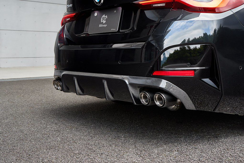 3DDesign’s Carbon Rear Diffuser for the BMW G26 4 Series M Sport Gran Coupe and i4 M Sport combines premium carbon fiber construction with aerodynamic function, enhancing rear stability and adding a sleek, motorsport-inspired look.