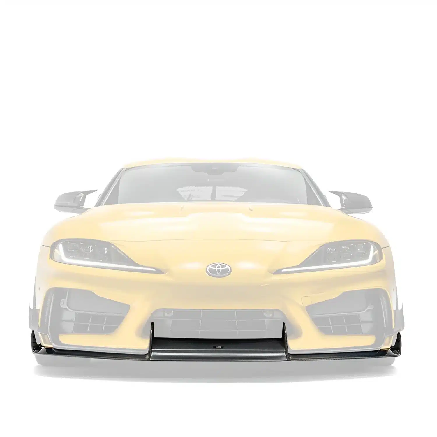 The V2 front lip is the next iteration of what ADRO has been developing for the GR Supra front aero program. Where the V1 established the foundation, the V2 extends it; more front overhang increases the aerodynamic surface area at the leading edge, the bolder silhouette adds visual presence that matches the aggressive character of the ADRO facelift bumper it is built for, and the overall form reflects the direction ADRO owners have been requesting since the original lip launched. The V2 is developed to work alongside the ADRO GR Supra Prepreg Front Bumper Canards as the complete front aero package. The documented performance context behind this pairing is significant; the original V1 lip with the full ADRO front aero kit produced a 970% increase in downforce at a minimal drag penalty at 180 kph. The V2 and canards together are developed to push beyond that. For a track-focused GR Supra build, the ADRO front aero system is not cosmetic; it is an engineered aerodynamic program with measurable performance results behind it.