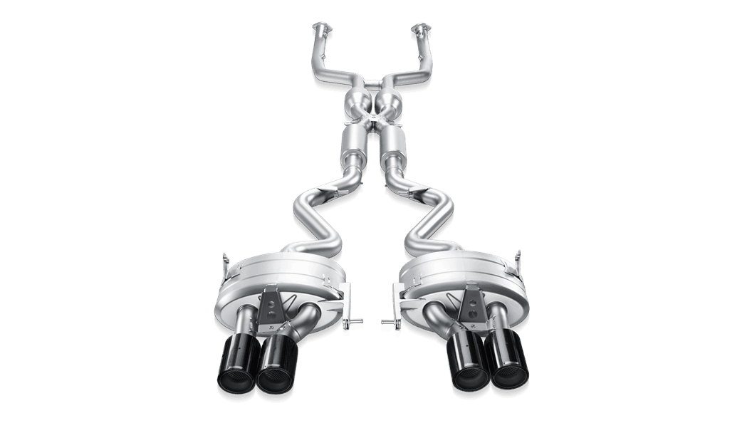 The Evolution performance exhaust system for the BMW M3 consists of dual-outlet mufflers, flow-optimized link pipes, and an X-pipe that incorporates high-flow 100 cpsi sports catalytic converters and resonators. The power and torque gains of the BMW M3 with the Evolution system are just amazing. A substantial increase is detected over a very wide RPM range, and so it increases responsiveness during all phases of driving. Together with incredible weight savings, the Evolution system dramatically changes the power-to-weight ratio.