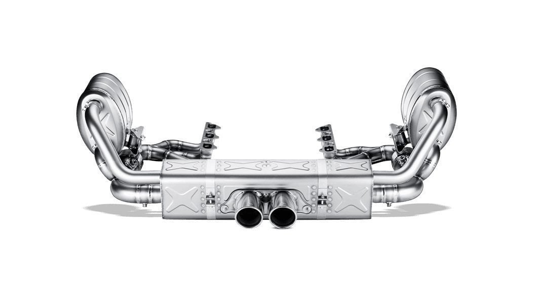 The fully titanium Evolution exhaust system pairs seamlessly with the Slip-On muffler and tailpipes, featuring a newly engineered exhaust manifold with 100 cpsi sports catalytic converters that ensure increased power and torque, along with optimized pre-mufflers. The standout advantage of this performance exhaust system is its weight reduction while preserving the original exhaust cap layout and functionality. The weight savings, particularly behind the engine and rear axle, greatly improve the vehicle’s handling. With this configuration, the exhaust sound becomes somewhat more robust and, when the caps are open, more aggressive than the original version. The distinctive appearance is finished off with a requisite rear carbon fiber lip.