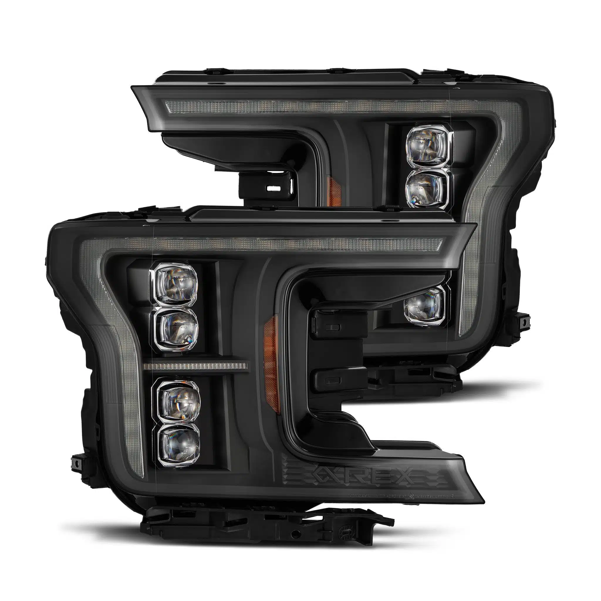 AlphaRex Ford F150 (MK II 14th Gen Style) NOVA-Series headlights deliver a refined lighting upgrade for the 18-20 Ford F150 (MK II 14th Gen Style) with signature 3D ice-cube projector layout, integrated DRL, amber sequential turn signals, and an activation startup sequence. Built for performance and longevity, they feature Osram and AlphaRex LEDs with precision-engineered optics, Nitto Denko TEMISH® moisture-managing vents, a durable PP housing, and coated polycarbonate lenses that resist fogging, yellowing, and oxidation.