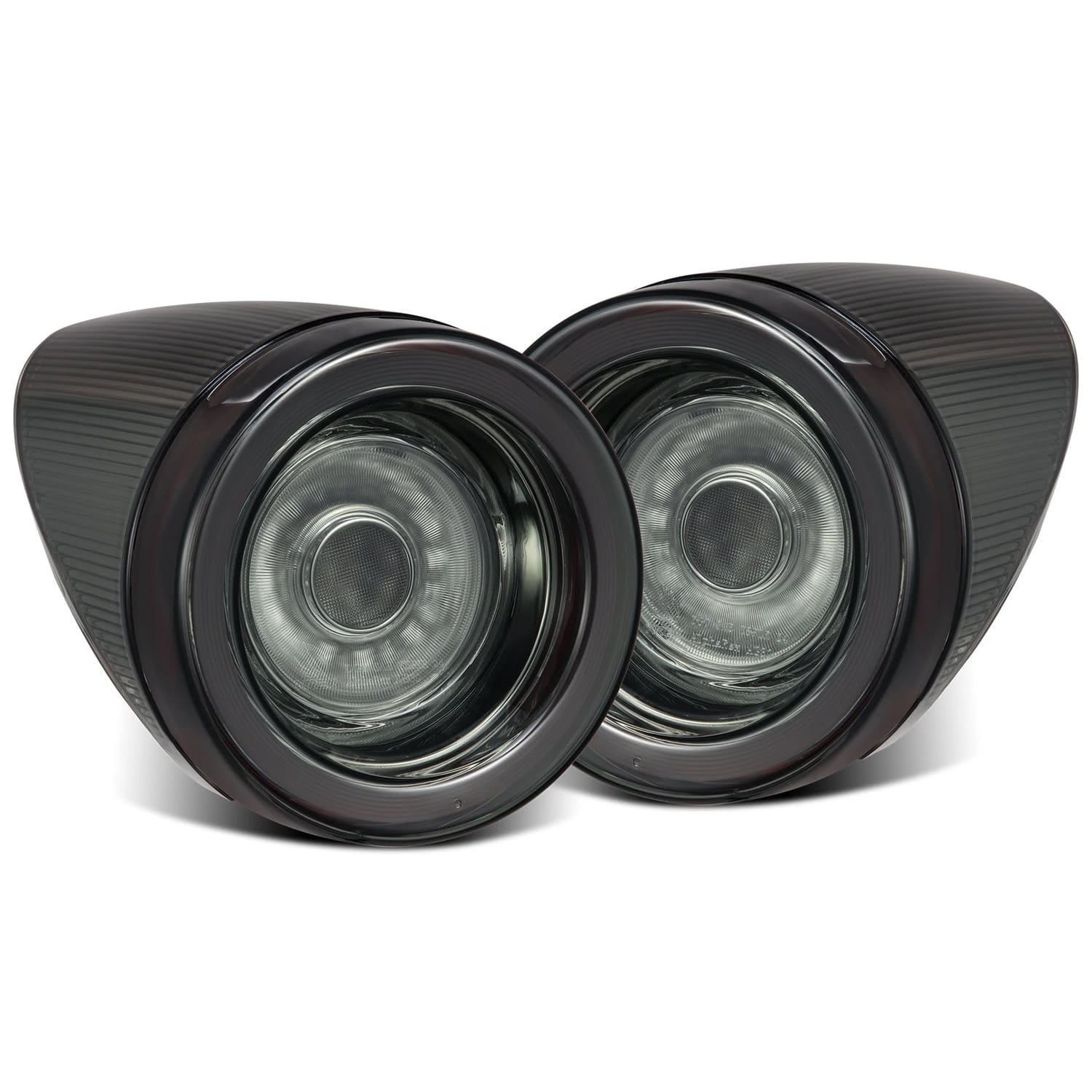 The Ferrari 458 NOVA-Series Prismatic LED Tail Lights retain the 458’s classic round shape while adding 488-inspired styling with a 3D double-circle pattern and a prismatic outer LED ring. Prism optics deliver a vivid 3D parking/brake glow, with amber turn signals, a white reverse light, an activation sequence, and a coated smoked polycarbonate lens paired to chrome-themed housing for durability and a sporty finish.