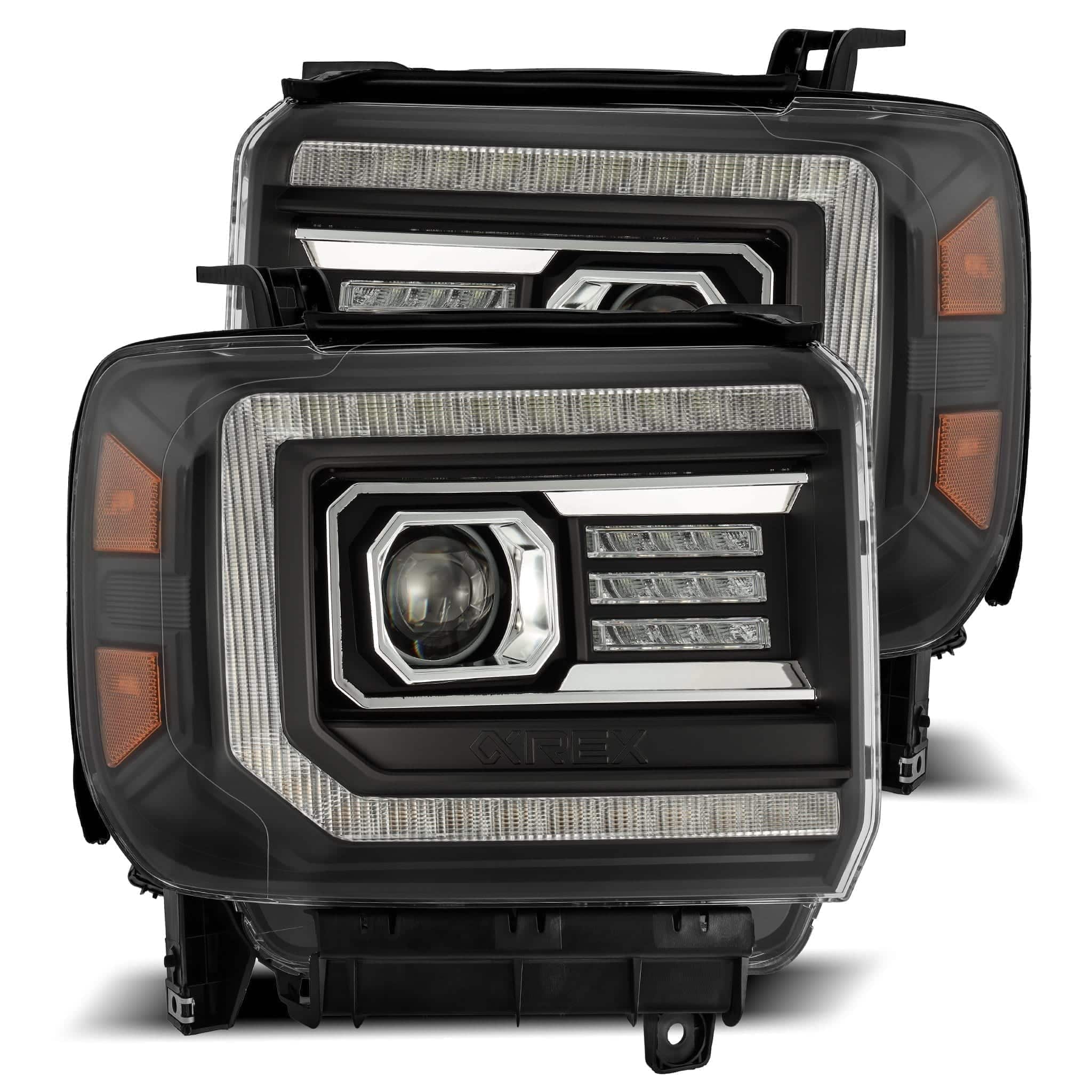 Are the AlphaRex PRO-Series GMC Sierra headlights a direct plug-and-play install? Yes. The AlphaRex PRO-Series headlights for the K2XX GMC Sierra are designed for plug-and-play installation, connecting to the factory wiring without modifications. Each pair includes required mounting hardware and installation instructions.