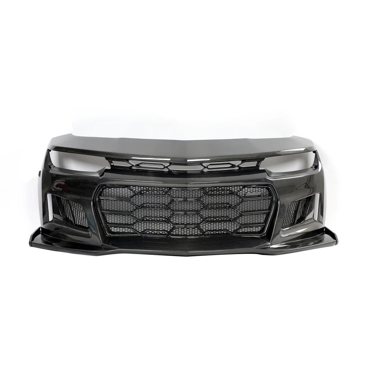 The Auto Addict Carbon Black Panther Front Bumper Conversion Kit for the fifth-generation Chevrolet Camaro LT, RS, SS, and ZL1 is a high-end, performance-driven upgrade designed to dramatically transform both appearance and aerodynamics. Constructed entirely from lightweight, high-strength carbon fiber, this bumper conversion kit delivers reduced front-end weight while offering excellent durability and resistance to heat and corrosion. The aggressive Black Panther–inspired design features sharp lines and track-focused styling that set the Camaro apart from stock, while carefully engineered airflow channels help reduce drag and improve high-speed stability through increased downforce. By combining motorsport-inspired aesthetics with functional aerodynamic benefits, this front bumper conversion allows Camaro owners to personalize their build with a distinctive, premium component that enhances performance, presence, and overall driving dynamics.