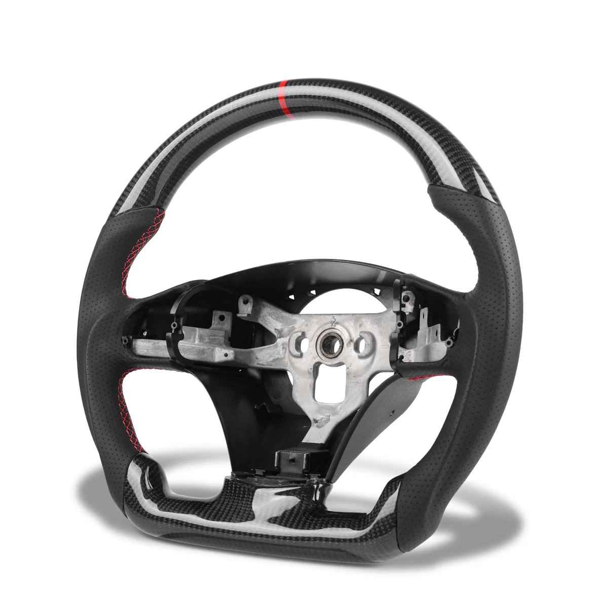 The Auto Addict Carbon Steering Wheel Core for the 2012-2013 C6 Chevrolet Corvette is a race-inspired, OEM-fit replacement that upgrades the cockpit with real carbon fiber and a sharper motorsport feel, offered in two configurations to match cars with or without paddle shifters. Each version is a pre-manufactured full steering wheel core, not an overlay or wrap, featuring black perforated leather grips for improved hold, red contrast stitching, and a red center alignment ring to modernize the factory interior. Choose the Non-Paddle option for a clean core with no paddle openings, or the Paddle-Shifter option with factory-style holes to retain OEM paddle functionality, delivering a premium look and tactile improvement while keeping the Corvette’s original steering wheel operation intact.