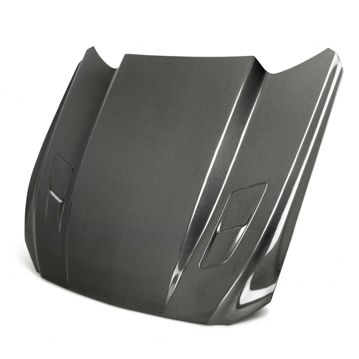 The stock 2015-2017 S550 hood does its job, but it is heavy and it holds heat where you do not want it when the car sees repeated heat cycles or sustained load. Auto Addict Carbon Type-CJ Cowl Hood for S550 Ford Mustang replaces the factory hood with a double-sided carbon fiber design that uses a bonded carbon fiber underside structure to keep the panel stable while cutting weight up front. The cowl profile is useful on real builds because it supports under-hood clearance and better heat evacuation when you are running hotter intake temps, adding power, or simply driving the car hard in warm conditions. Fitment is for all 2015-2017 pre-facelift S550 Mustang models, and the hood is designed to mount with OEM hardware for straightforward installation. A heat shield is required due to engine-bay temperatures and is available as an optional add-on.