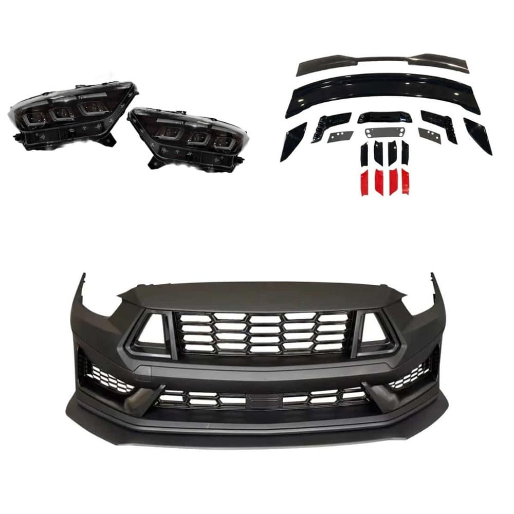 Pre-facelift S550 Mustangs still drive great, but the exterior can look dated next to newer cars, and mixing aftermarket parts often leaves you with inconsistent lines and fitment. The Auto Addict Dark Horse Conversion Bundle packages the core pieces needed to update the car’s front and rear styling in one matched setup; a full Dark Horse-style front bumper conversion, S650-style LED projector headlights, and a gloss black Dark Horse-style rear spoiler. The headlights are designed to run on factory connectors with a simple install approach, requiring only one splice to enable the turn signal function, and the sequential amber output gives the car a newer OEM-style light signature. The gloss black ABS rear spoiler is lightweight and durable, and it ties the look together without requiring a full repaint if you are keeping a black accent theme.