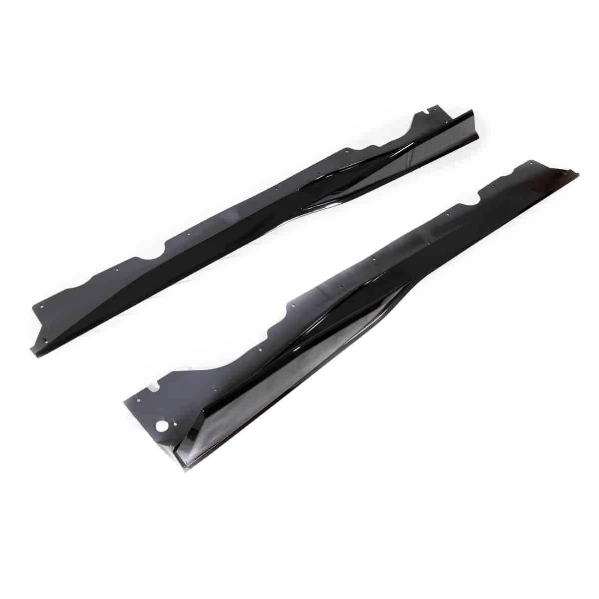 The Auto Addict Gloss Black Evo Style Side Skirts for the C8 Corvette Stingray combine aggressive aesthetics with aerodynamic performance. Made from durable polypropylene, these extensions reduce high-speed lift and improve cornering stability by managing side airflow. The sleek gloss black finish provides a custom look while enhancing traction and handling for a more planted driving experience.
