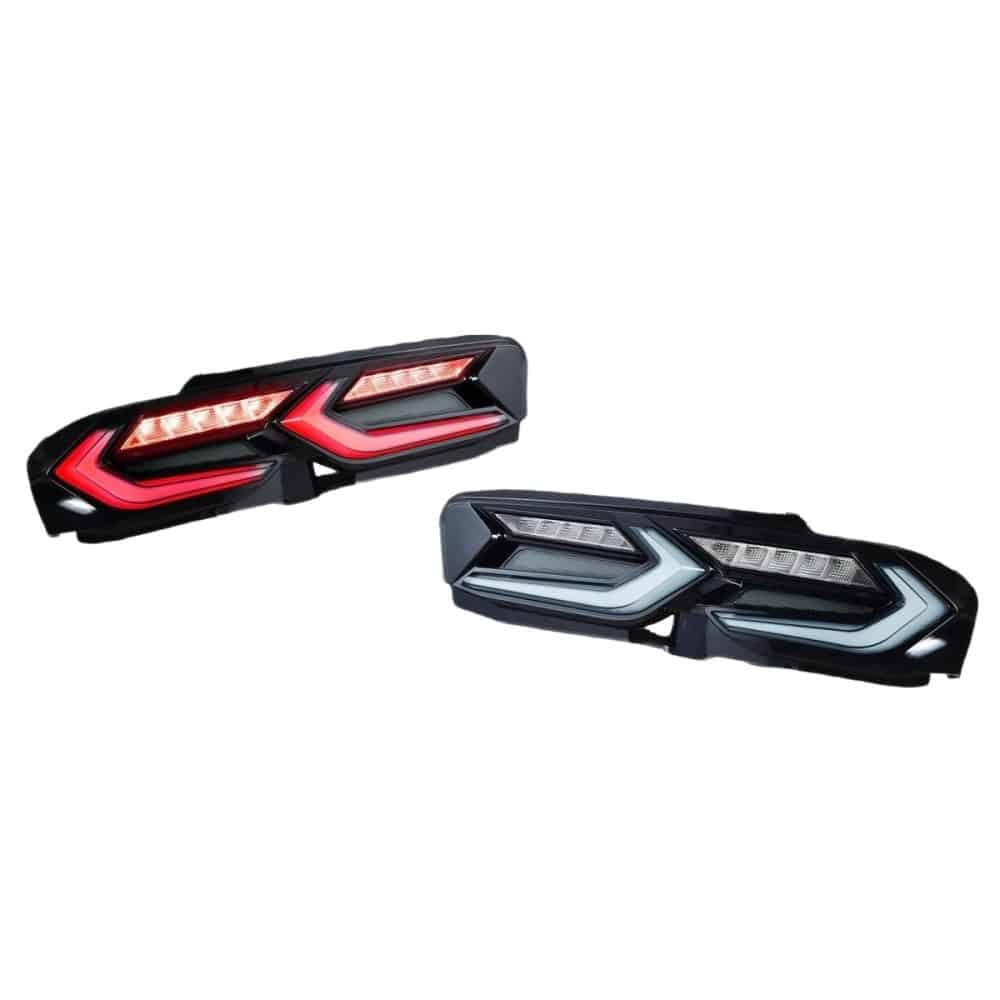 The Auto Addict Gloss Black Umbra LED Taillights with Smoke Lens update the rear of any 2019-2024 facelift 6th Gen Chevrolet Camaro with a sharper, euro-inspired look, pairing a gloss black housing with a smoked lens for a modern, aggressive finish. A full LED layout delivers bright red running lights that sweep outward with a diffused, motion-driven glow, crisp white reverse lights for clean visibility, and sequential amber turn signals that stand out day or night, with an available RGB color-change option for added customization. Built for OEM-grade dependability by an ISO-certified manufacturer, these taillights are DOT and SAE certified, use UV-resistant polycarbonate for long-term clarity, and install as a plug-and-play kit with pre-assembled harnesses and built-in resistors to prevent hyper flashing, with simple third brake light wiring required.
