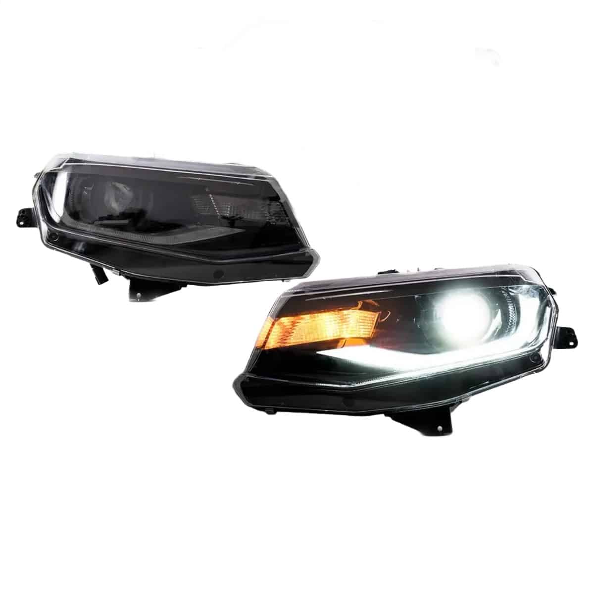 The Auto Addict OEM Replica Projector Headlights are a premium custom lighting upgrade for 2016-2018 pre-facelift 6th Gen Chevrolet Camaro LT, RS, and SS models, and they also fit 2017-2024 Camaro ZL1 trims for added versatility. Handcrafted by Auto Addict USA, each set is baked open and professionally modified to deliver a refined, personalized front-end look while maintaining an OEM-style projector design. Built-in LED high and low beams provide ultra-bright white output for improved nighttime visibility, and the plug-and-play design keeps installation straightforward with factory-style fitment and operation.