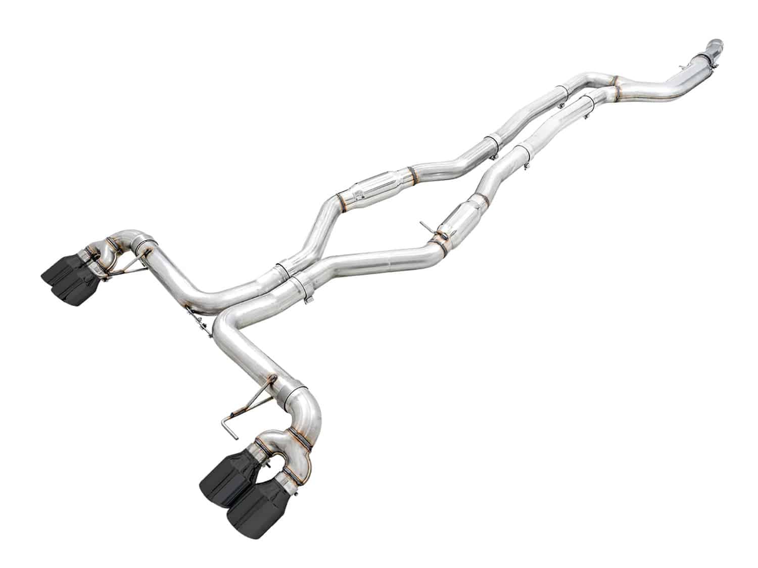 The AWE Track Edition Exhaust for the G2X BMW M340i and BMW M440i uses straight-through sections to deliver a louder, more aggressive B58 sound. It features quad diamond black tips, T304L stainless steel construction, and a direct bolt-on design that emphasizes performance-oriented tone while maintaining factory valve compatibility.