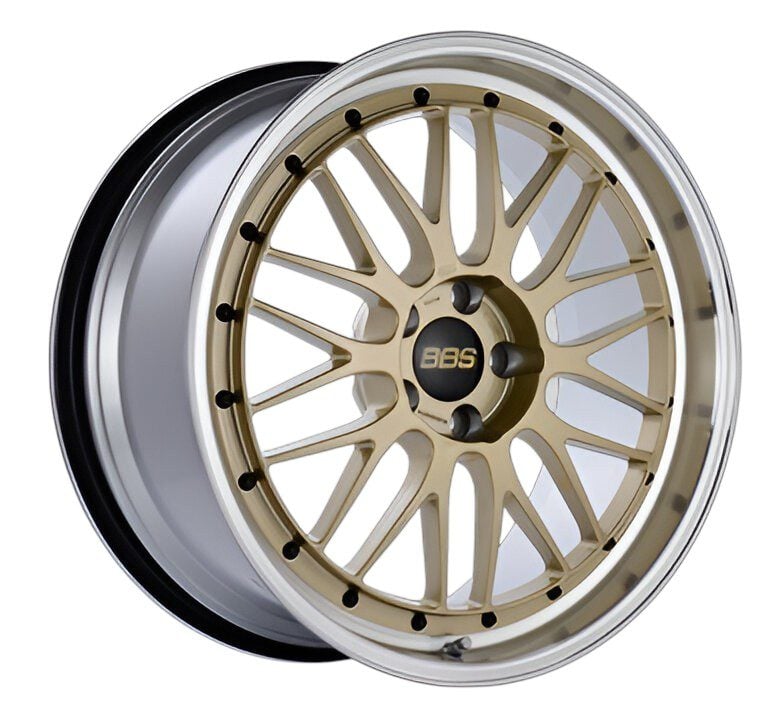 The BBS LM Wheel is a two-piece forged design with a classic mesh pattern, lightweight yet strong construction, and a gold face with a diamond-cut lip, offering a balance of performance, craftsmanship, and heritage.