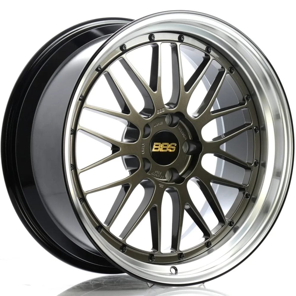 The BBS LM is a two-piece forged wheel with a classic mesh design, lightweight forged construction, and a Selenite Bronze finish, offering strong rigidity, precise handling, and lasting motorsport character.