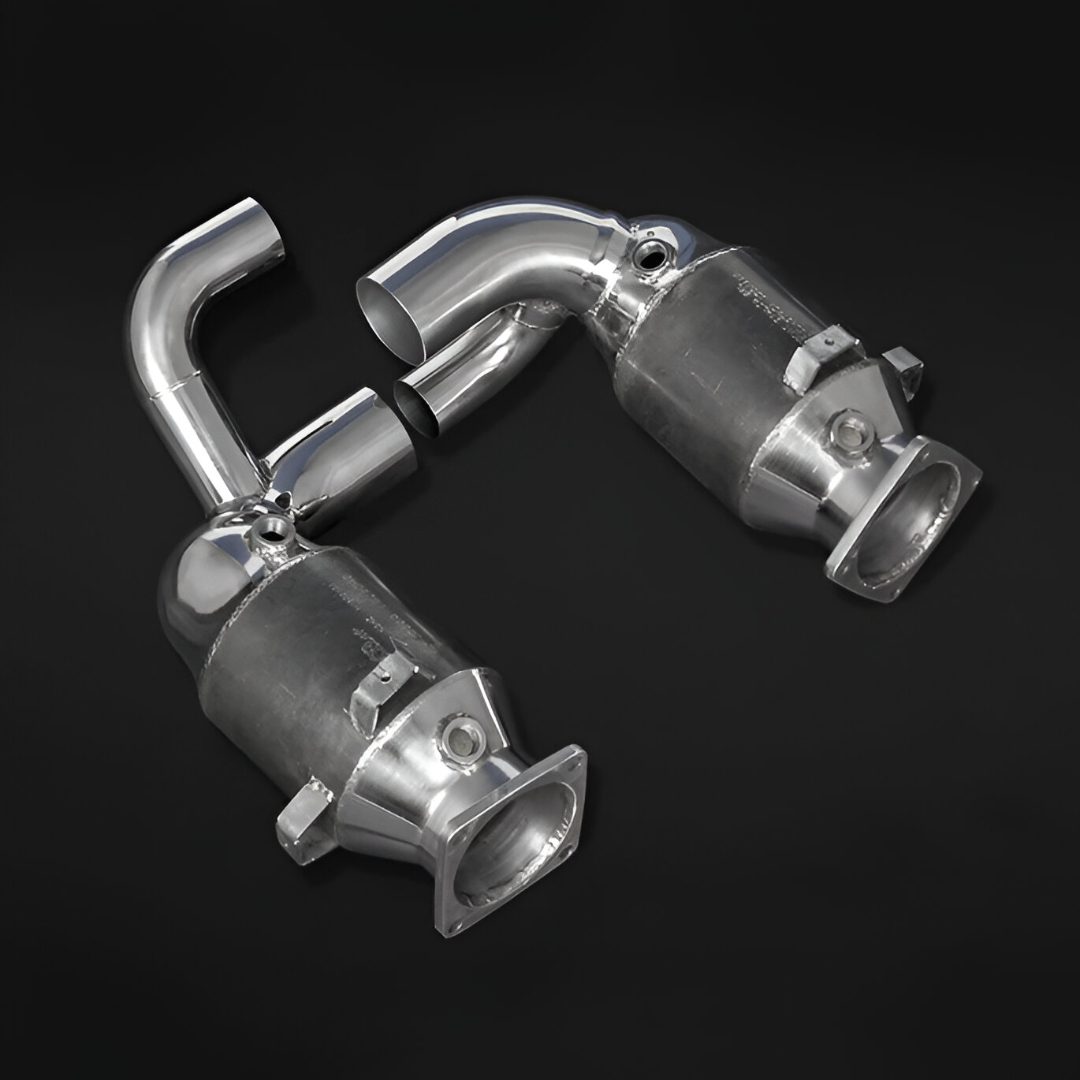 Capristo’s 250 Cell Sport Cats for the 991.2 Porsche 911 Carrera GTS are engineered to free up exhaust flow, sharpen throttle response, and enrich the car’s tone while preserving day-to-day refinement. Designed for seamless installation, they mate directly to Capristo systems or any exhaust that connects to the OEM interfaces. The compact 5.2-inch catalyst housings are optimized to maximize gas velocity and ensure smooth operation with valved exhaust setups, delivering a balanced upgrade in performance and sound.