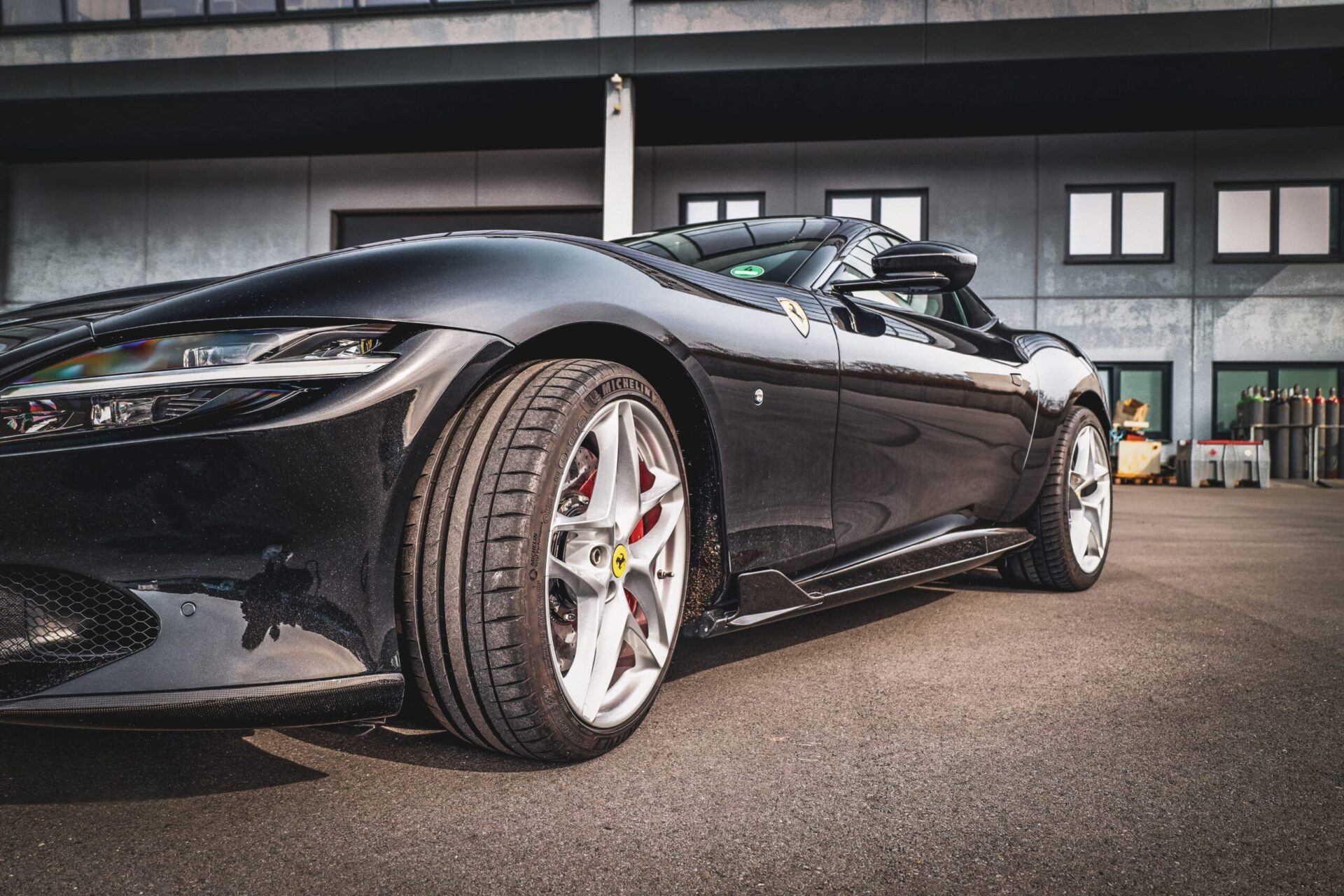 Capristo aimed for the Ferrari Roma front conversion to create a design that merges smoothly with the vehicles inherent style, preserving its original contours and visual appeal. Their goal was to enhance the car’s sophisticated and smooth lines with the addition of traditionally inspired Ferrari Side Skirts.