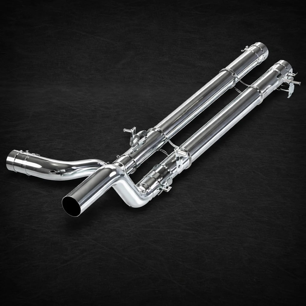 The Capristo Exhaust Mid Silencer Replacement Pipes are designed for owners who want a sharper, more aggressive exhaust note from their Capristo Automotive Australia listed RAM TRX application by deleting the factory mid silencer section. Built for precise fitment, this spare-pipe set improves exhaust flow for a more pronounced sound character and potential performance gains, while keeping the rest of the system layout straightforward.