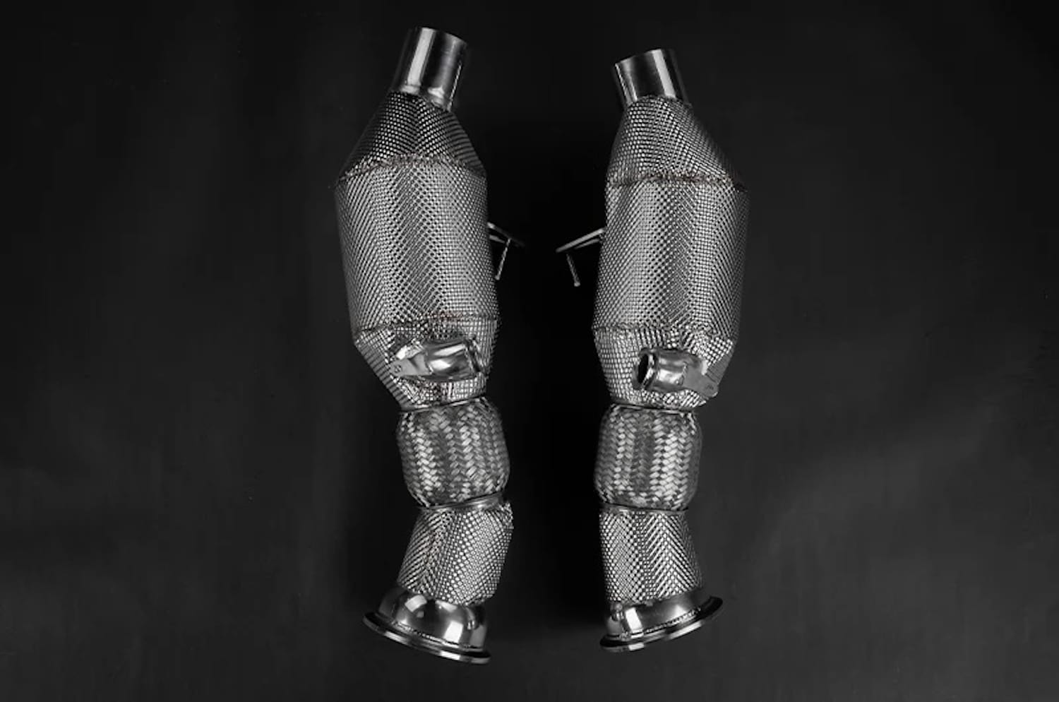 Capristo Exhaust Ferrari 296 Cat Spare Downpipes are engineered as a premium replacement downpipe set, manufactured exclusively at Capristo’s facility in Sundern, Germany using the same OEM-level development process the brand is known for, including advanced 3D laser-scanning, CAD design, digital prototyping, and CNC bending / milling. Constructed from highest-grade T309 stainless steel, each set is manually TIG welded by Capristo craftsmen and hand polished to a mirror finish post-weld for durability and presentation. Designed to integrate cleanly with either OEM or Capristo mid pipes, OBD Wizard Pro is required for check engine light (CEL) elimination. For off-road and track use only.