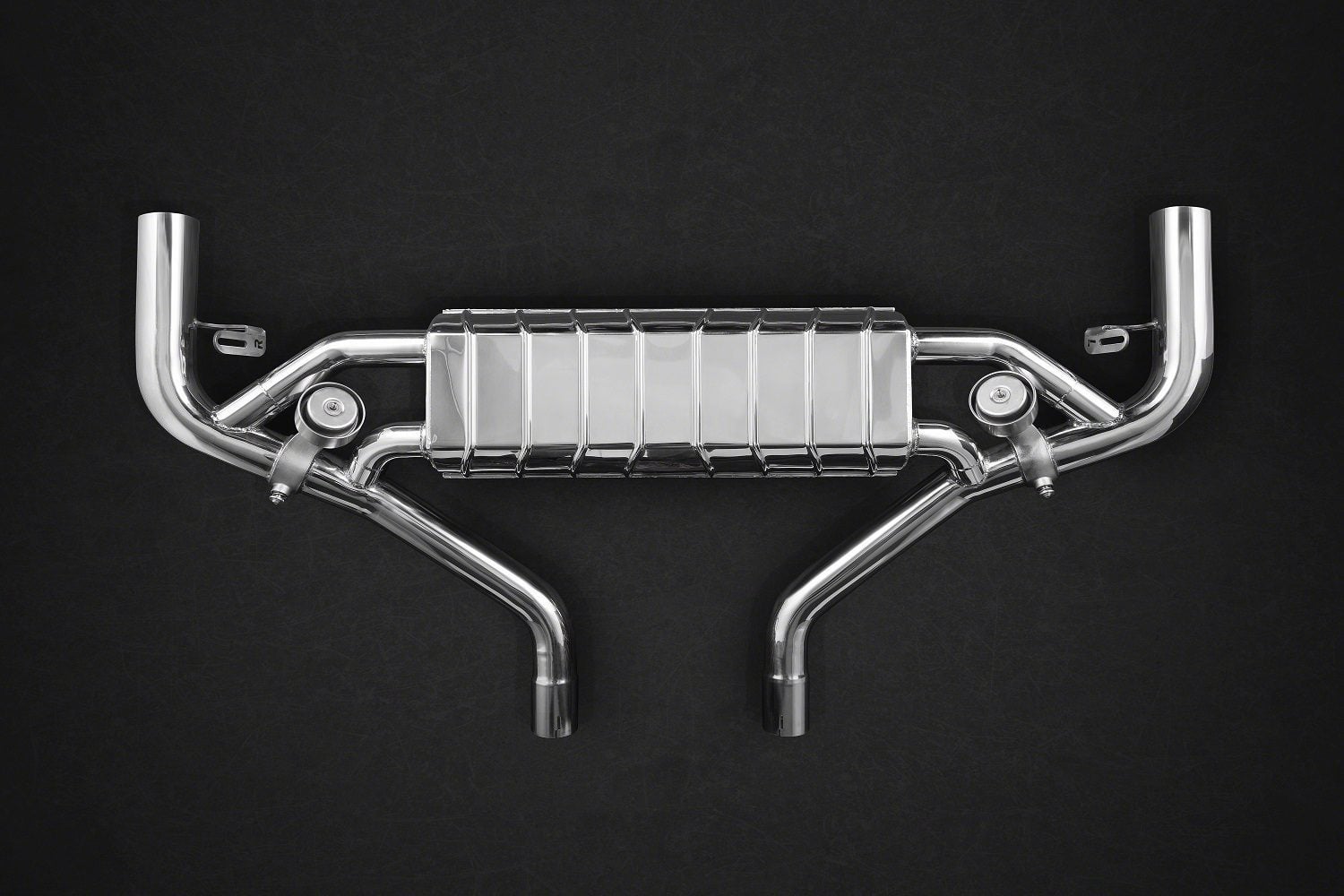 The revered Capristo Valved Exhaust System offers an adaptable acoustic experience, producing a vigorous exhaust note upon acceleration and ensuring a muted atmosphere during city travels. Vacuum-actuated valve flaps facilitate this versatility, responsively adapting to both driving circumstances and inputs from the driver.