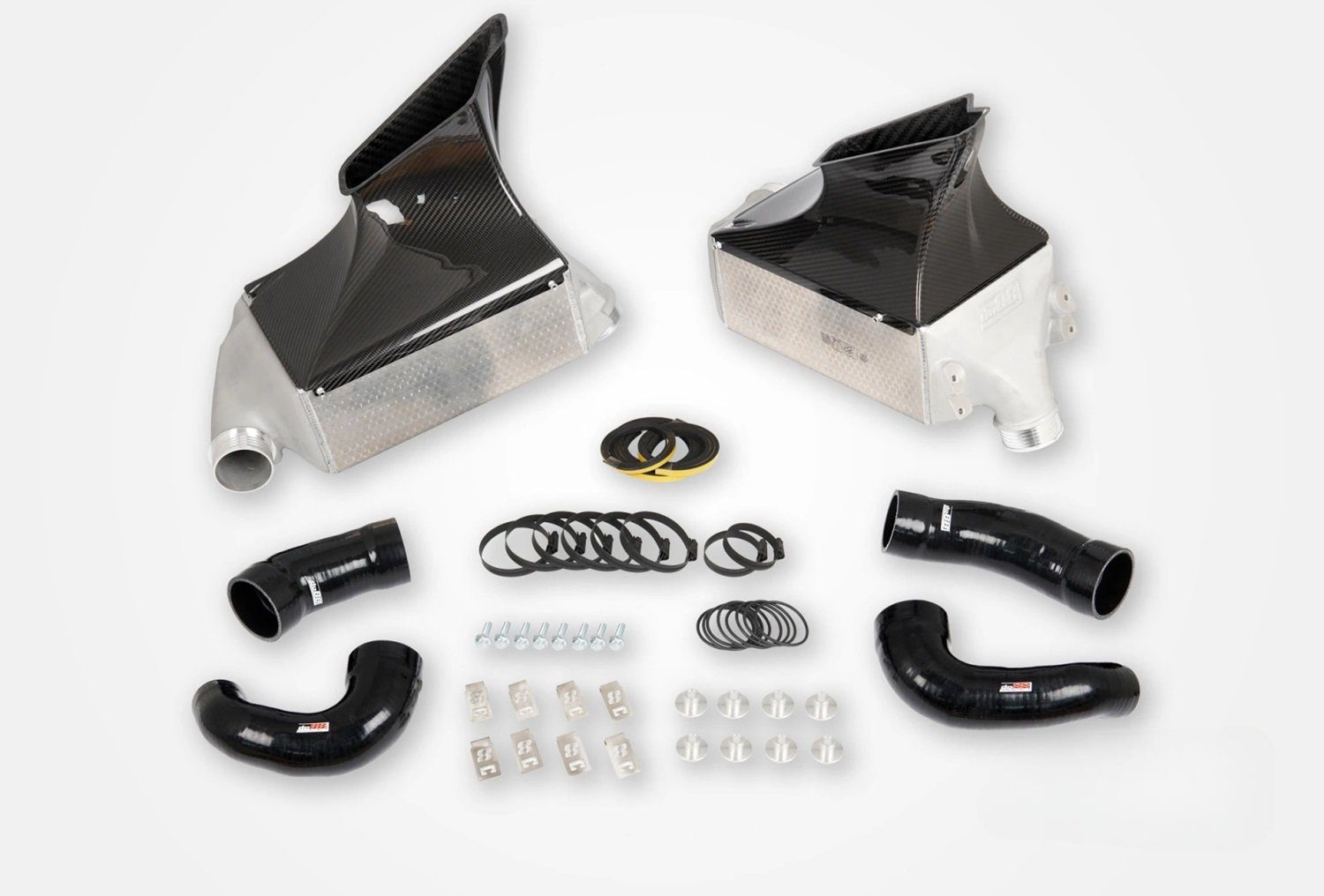 The do88 Performance MERA Intercooler Kit is expertly crafted to boost the efficiency and performance of the 996 Porsche 911 Turbo. It features precision-engineered cast end tanks and a custom-designed upper ambient air guide, ensuring optimal integration and airflow across the core. The kit includes large 70mm connections and high-temperature resistant hoses that are 3D-designed and CFD-tested. Additionally, carbon ducts with tight seals ensure that all air passes through the core, enhancing heat transfer. Compatible with OEM or do88’s 63.5mm Y-pipe, this intercooler kit is engineered to significantly improve cooling and airflow for superior vehicle performance.