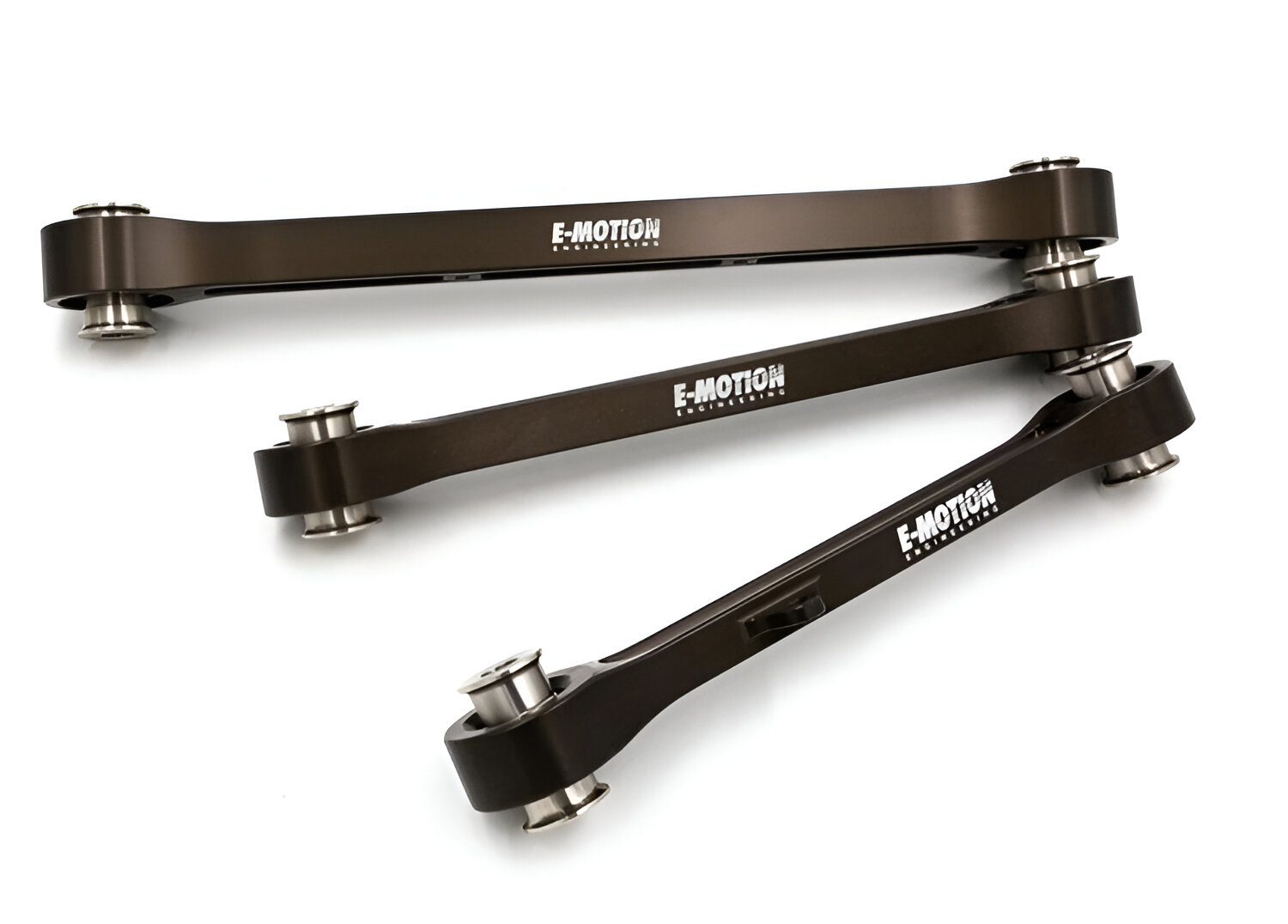 E-Motion Rear Outer Control Arm Set for 991 & 992 Porsche 911 Carrera, GT2 RS, GT3, GT3 RS, Turbo, and Turbo S boosts rigidity, traction, and handling with billet aluminum construction and a direct bolt-on fitment for track and street use.