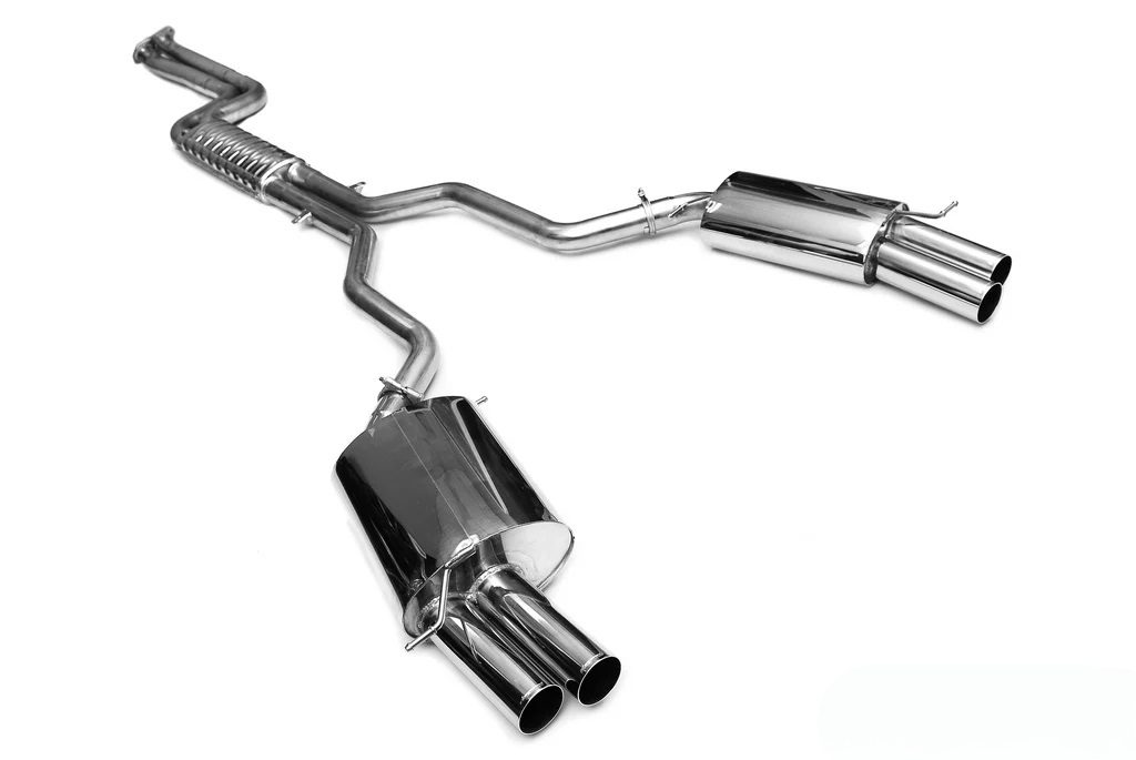 The Eisenmann Performance Exhaust System for the E89 BMW Z4 35i / 35is is a high-quality upgrade designed to enhance both the sound and performance of the Z4. Available in two distinct sound levels — Sport, offering a refined, balanced tone, and Race, delivering a more aggressive and motorsport-inspired growl — this system allows for a customized auditory experience. The exhaust comes with two tip options: dual 90mm round tips for a sleek, classic look, or quad 76mm round tips for a sportier, more dynamic appearance. Constructed from premium stainless steel, the system improves exhaust flow, reduces backpressure, and enhances overall engine performance, delivering a more engaging driving experience. Please note, the quad tip option requires modification of the rear bumper for proper fitment.
