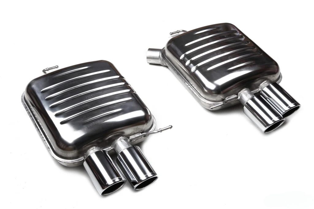 The Eisenmann Rear Mufflers for F10 BMW 550i deliver a refined balance of performance and style, transforming the character of BMW’s executive sedan. Handcrafted in Germany from premium stainless steel, the system is available in two sound profiles — Sport, offering a smooth, deep tone for everyday driving, and Race, delivering an aggressive, motorsport-inspired roar. Owners can further personalize the look with either dual 90mm or quad 90mm polished tips, the latter adding a dramatic presence to the rear of the car. With precise fitment, improved exhaust flow, and Eisenmann’s signature craftsmanship, these mufflers bring both sound and substance to the F10 550i