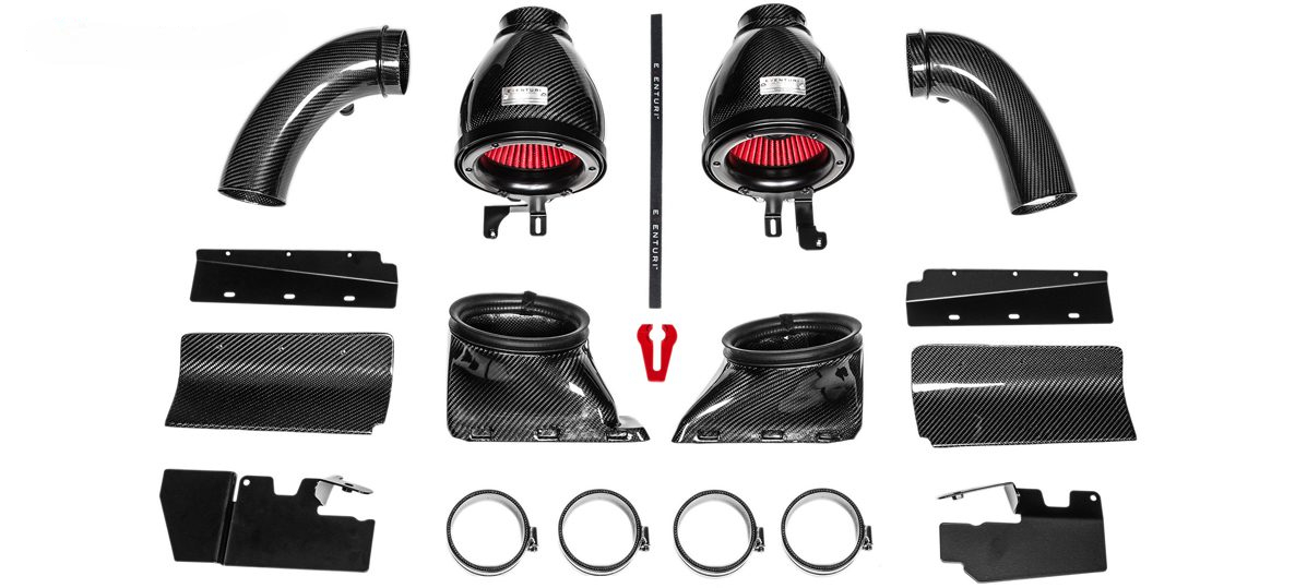 • The RS5 and RS4 Eventuri system utilizes their patent-pending carbon fiber housings, designed to provide an aerodynamically efficient airflow path from the filters to the throttle bodies. This is not just a standard cone filter with a heat shield; it incorporates a unique design that leverages the Venturi effect to optimize airflow.