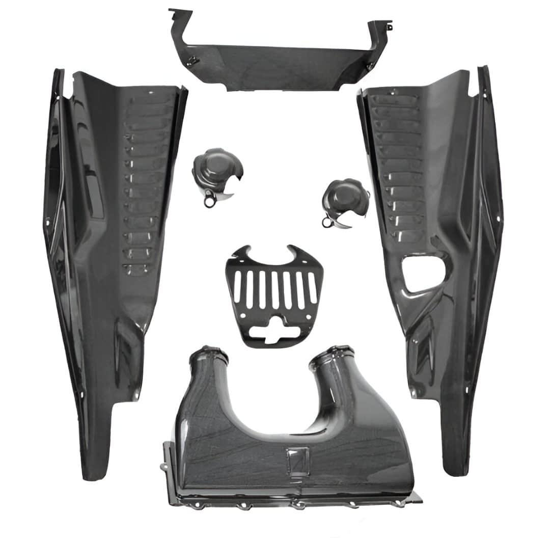 Fabspeed’s Carbon Engine Bay Set for the F142 Ferrari 458 Italia is designed to elevate the engine compartment with an OEM+ finish while preserving factory fitment. Each component installs cleanly in the original mounting locations for a seamless, integrated look rather than an obvious add-on. All pieces are finished in a high-quality UV-protectant clear coat to maintain gloss, resist fading, and deliver long-term durability under heat.