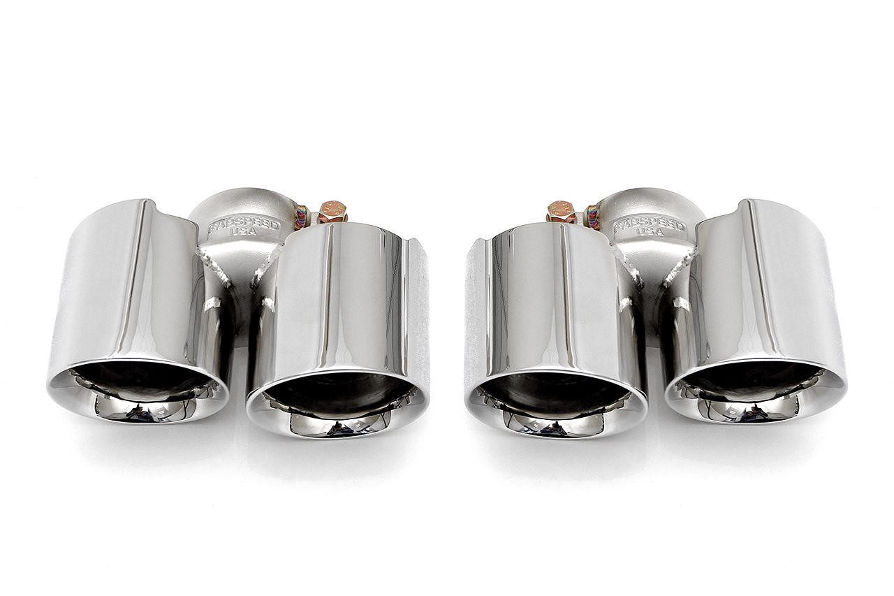 Premium T304 Stainless Steel Quad Style outlet tips serve as replacements for the factory tips on Non-PSE equipped vehicles, enhancing the visual appeal of the 997.2 Carrera. These tips are offered in a variety of finishes, including polished, carbon fiber, or powder-coated satin black, allowing for a personalized and more sophisticated appearance.