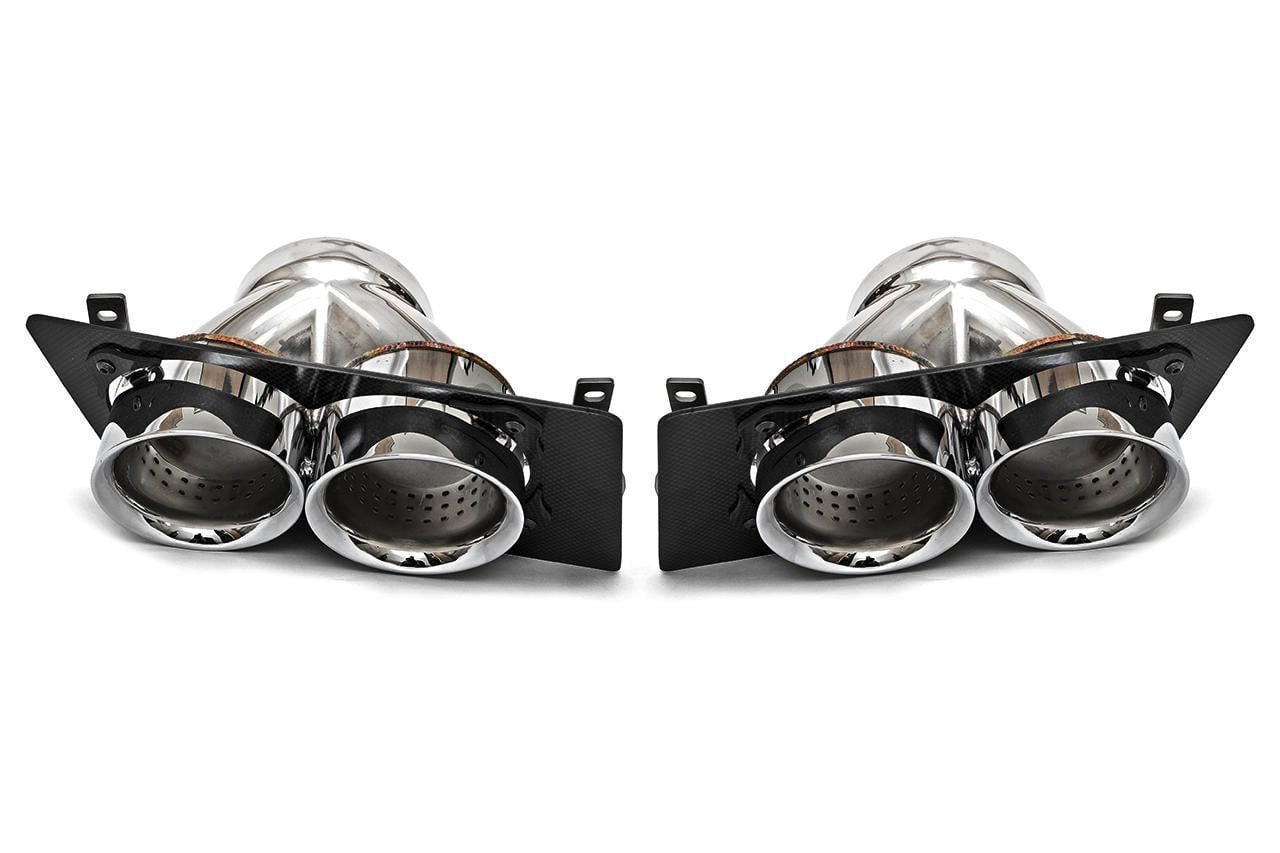 Available in a polished or satin black finishes, these quad-style tips offer unparalleled customization to suit your personal taste. Crafted from premium T304L stainless steel, they ensure maximum durability and longevity, withstanding the rigors of daily driving and environmental elements. Elevate the appearance of your Gallardo’s rear bumper with these sleek and stylish tips, designed to seamlessly integrate as a direct replacement for the factory outlet tips.