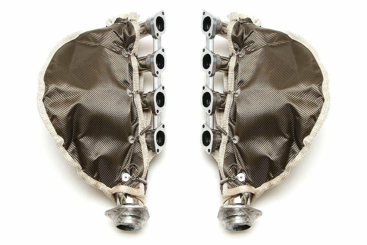 Fabspeed’s Header Blankets for the Ferrari F430 are engineered to control underhood temperatures by keeping exhaust heat contained and protecting surrounding components from thermal stress. Built in the USA using an aerospace-grade combination of refractory ceramic fiber and Kevlar, these blankets deliver serious heat management under sustained load. They install cleanly with no cutting required, making them a practical, high-value upgrade for both longevity and performance consistency.