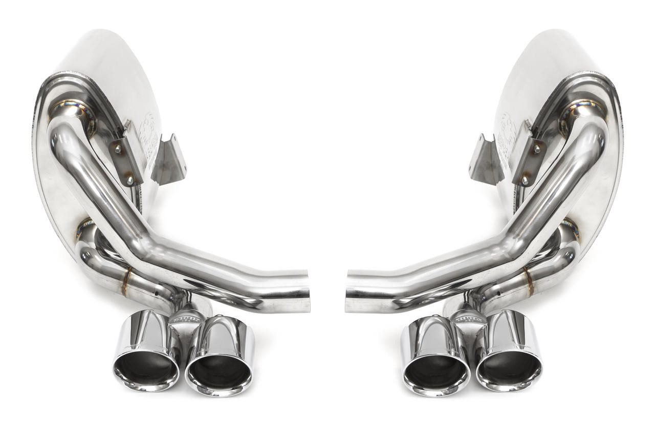 The 991 Carrera Maxflo Performance Side Exhaust system serves as a replacement for the factory side mufflers, effectively enhancing both exhaust flow and overall power, all while delivering a deep and resonant sports car sound. This system provides flexibility, allowing it to be used with the OEM outlet tips or upgraded to include Deluxe Quad-Style Tips. Fabspeed’s recommendation is to pair these Side Mufflers with a Center Muffler Bypass X-Pipe for non-PSE equipped vehicles, resulting in a slightly more throaty and deeper exhaust note.