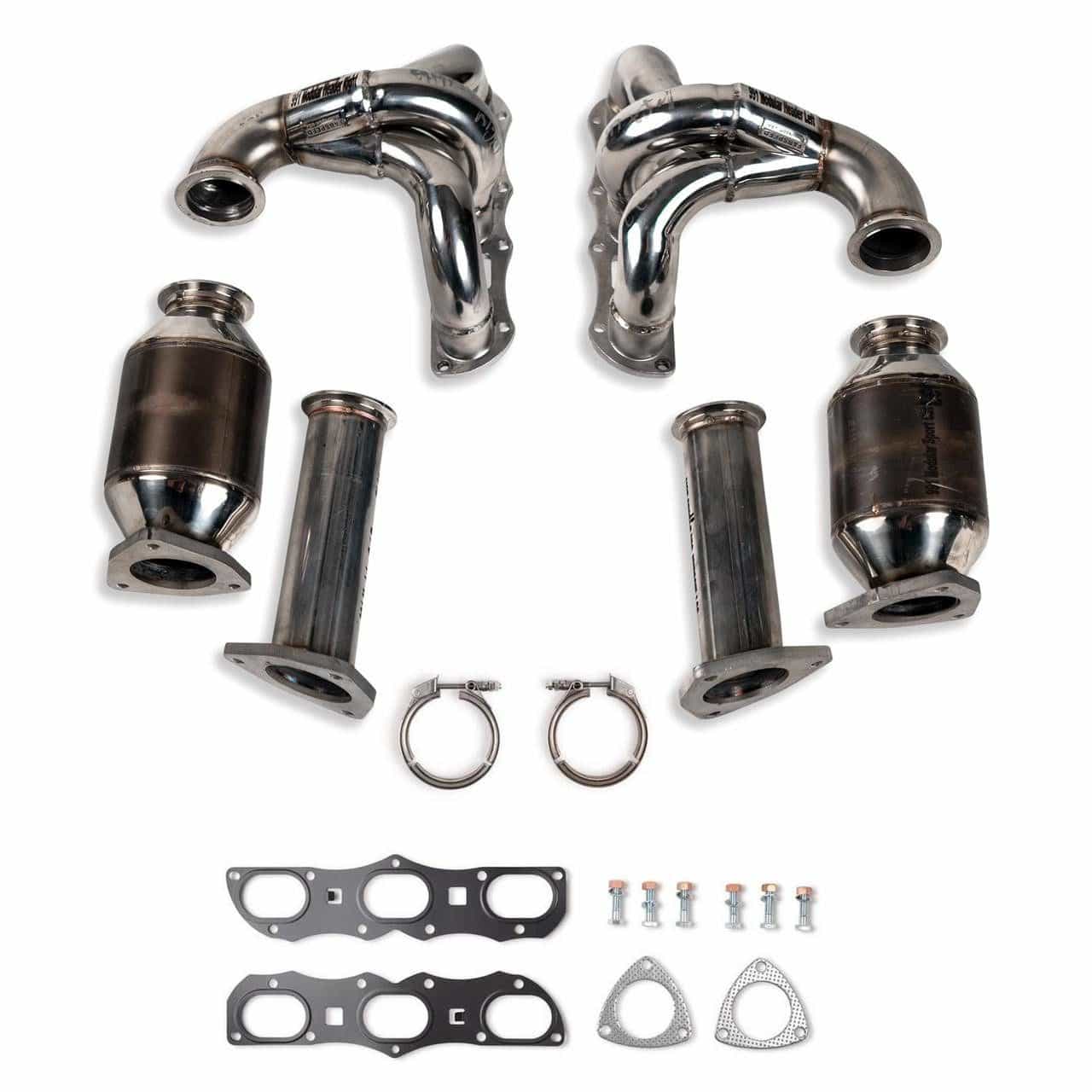 Fabspeed’s RENNKRAFT modular headers for Porsche 911 use a patented quick-release V-band design, allowing owners to easily switch between German-made HJS 200-cell sport cats and straight cat-bypass pipes for track-only use. The system delivers true street-and-race flexibility, with European-homologated, US EPA-compliant HJS catalysts that can be individually replaced if they ever fail due to poor fuel, backfires, or high mileage.