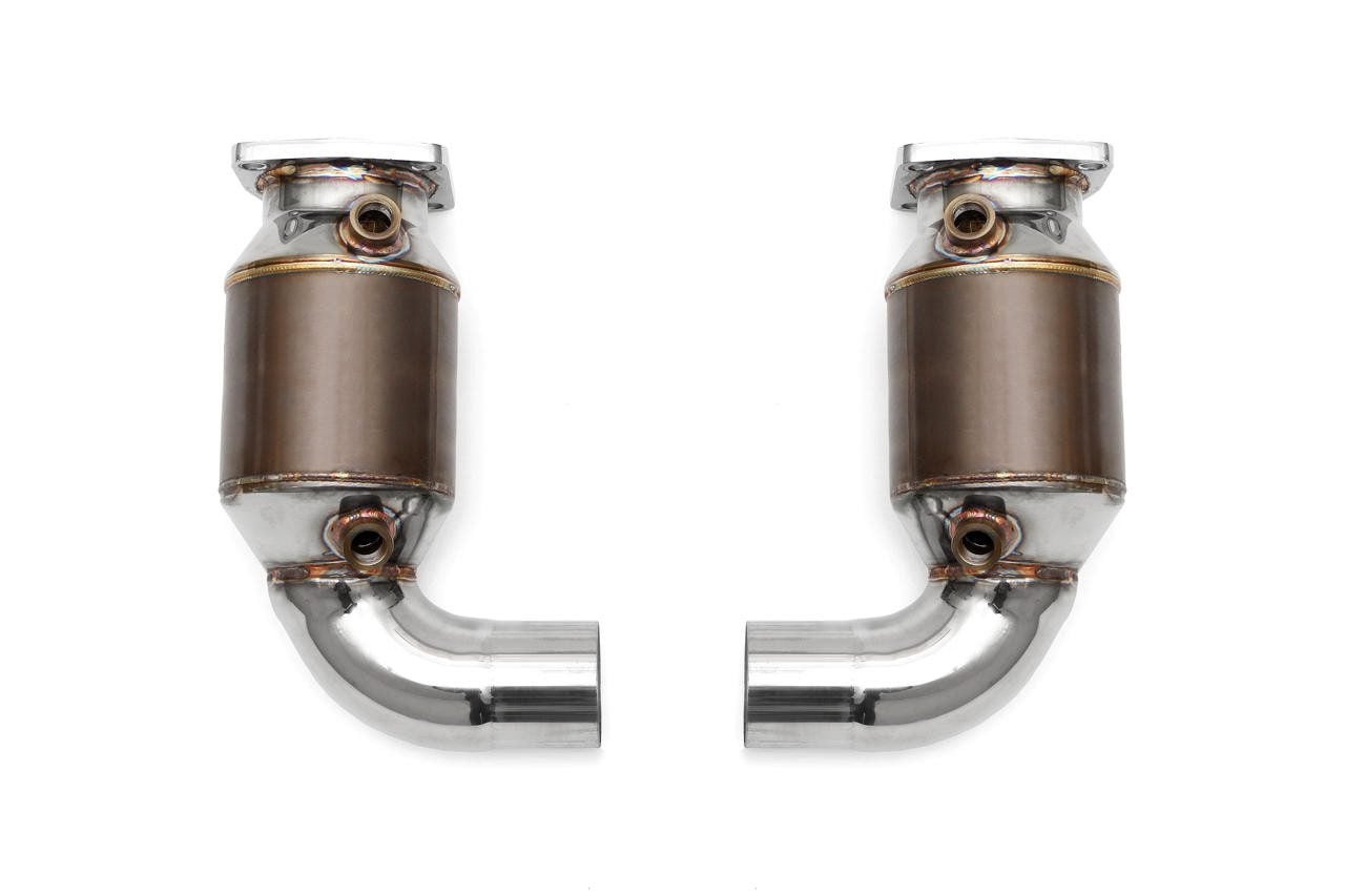 The Fabspeed Sport Cats for the 991.1 Porsche 911 Turbo & Turbo S offer a high-flowing, direct bolt-on replacement for the factory components, delivering significant performance enhancements. Featuring HJS German catalytic converters, these sport cats provide improved exhaust flow, boosting power and throttle response, while also enriching the sports car sound for a more aggressive and thrilling exhaust note. Built for long-term durability, Fabspeed Sport Cats are the ideal upgrade for enthusiasts seeking both improved performance and an elevated driving experience.
