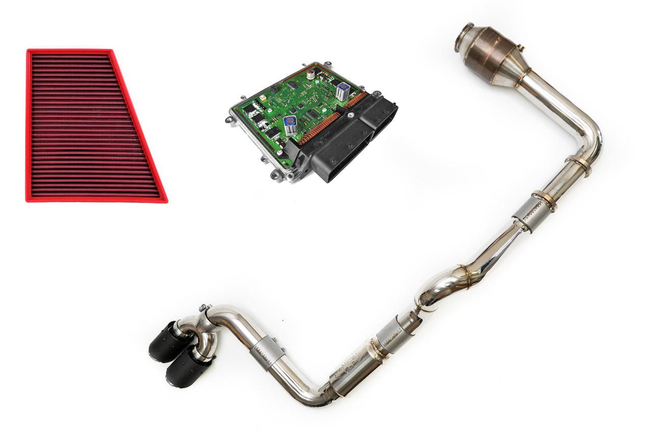 Unlock the full performance capabilities of the 718 while experiencing the bold sound of a performance exhaust and maximizing the vehicle’s horsepower and torque potential by unleashing the turbocharger’s efficiency through reduced backpressure. With Fabspeed Motorsports comprehensive performance package, drivers can expect significant horsepower and torque gains while simultaneously reducing weight and achieving an optimal sound signature and volume for their vehicle. This complete performance package, from turbo back, represents the pinnacle of Fabspeed exhaust and intake components, meticulously crafted with precision in-house using state-of-the-art CNC equipment. Each part undergoes rigorous testing against OEM benchmarks to ensure superior performance. Complemented by intake and tuning upgrades from leading industry brands, this ultimate Performance Package for your 718 single turbo delivers unmatched performance and driving experience.