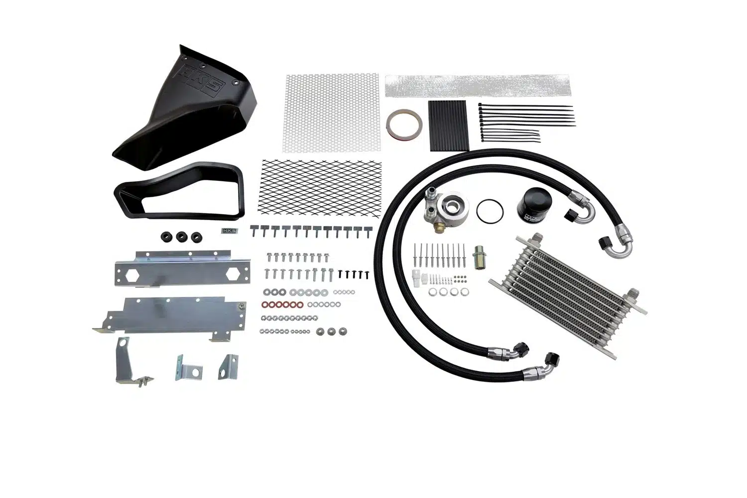 HKS Black S-Type Oil Cooler Kit for the FL5 Civic Type R is built for sustained high-load driving, using an OEM-style air duct design that feeds fresh air directly to the core and promotes smooth airflow evacuation for consistent cooling. It also includes a core protector to help guard against road debris.