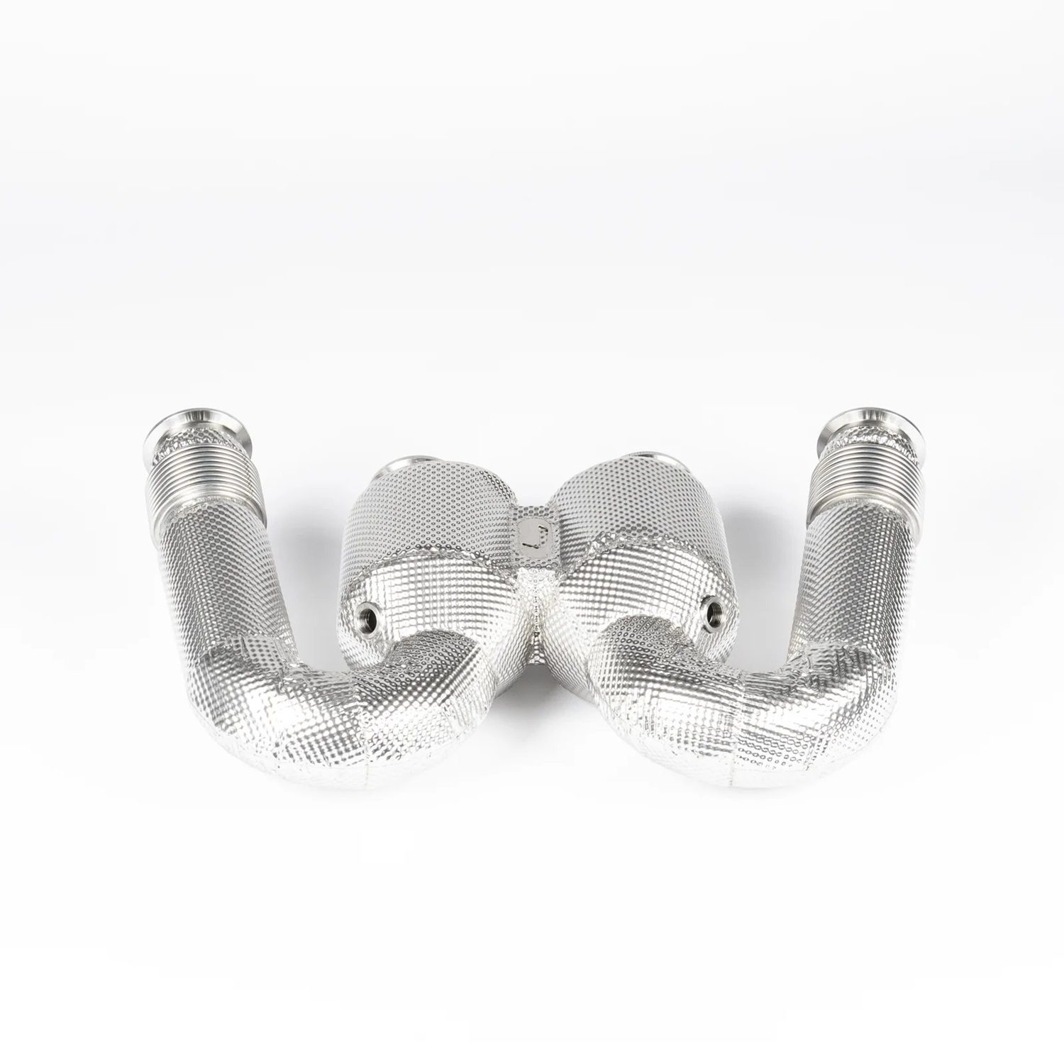 The JCR Inconel Race Downpipes for the 918 Porsche 918 Spyder are precision-crafted components designed to enhance both the performance and sound of this iconic hypercar. Constructed from high-performance Inconel 625, these downpipes offer exceptional durability and heat resistance, ensuring they can withstand the extreme conditions of motorsport and high-performance driving. The downpipes feature 200-cell race catalysts that provide a significant reduction in exhaust backpressure, delivering more power and a sharper, more aggressive exhaust tone. They are designed for a direct, bolt-on fitment, with no modifications required to the OEM system. Additionally, the JCR Inconel Race Downpipes reduce overall weight by over 6.77kg compared to the stock components, improving vehicle dynamics. With advanced heat shielding technology sourced from motorsport-grade materials, these downpipes also effectively manage exhaust temperatures and protect surrounding components, making them the ideal upgrade for enthusiasts seeking both performance gains and a distinctive exhaust note.