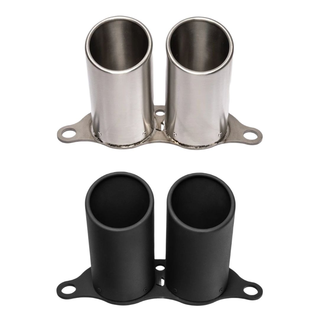 The JCR Inconel Race Rolled Exhaust Tips are a premium accessory for JCR exhaust systems on the 992 Porsche 911 GT3 series and S/T. Made with a titanium flange and Inconel rolled tips, they increase the tip diameter to 102mm, enhancing both the look and sound. They are available in a Polished or Black Coated finish.