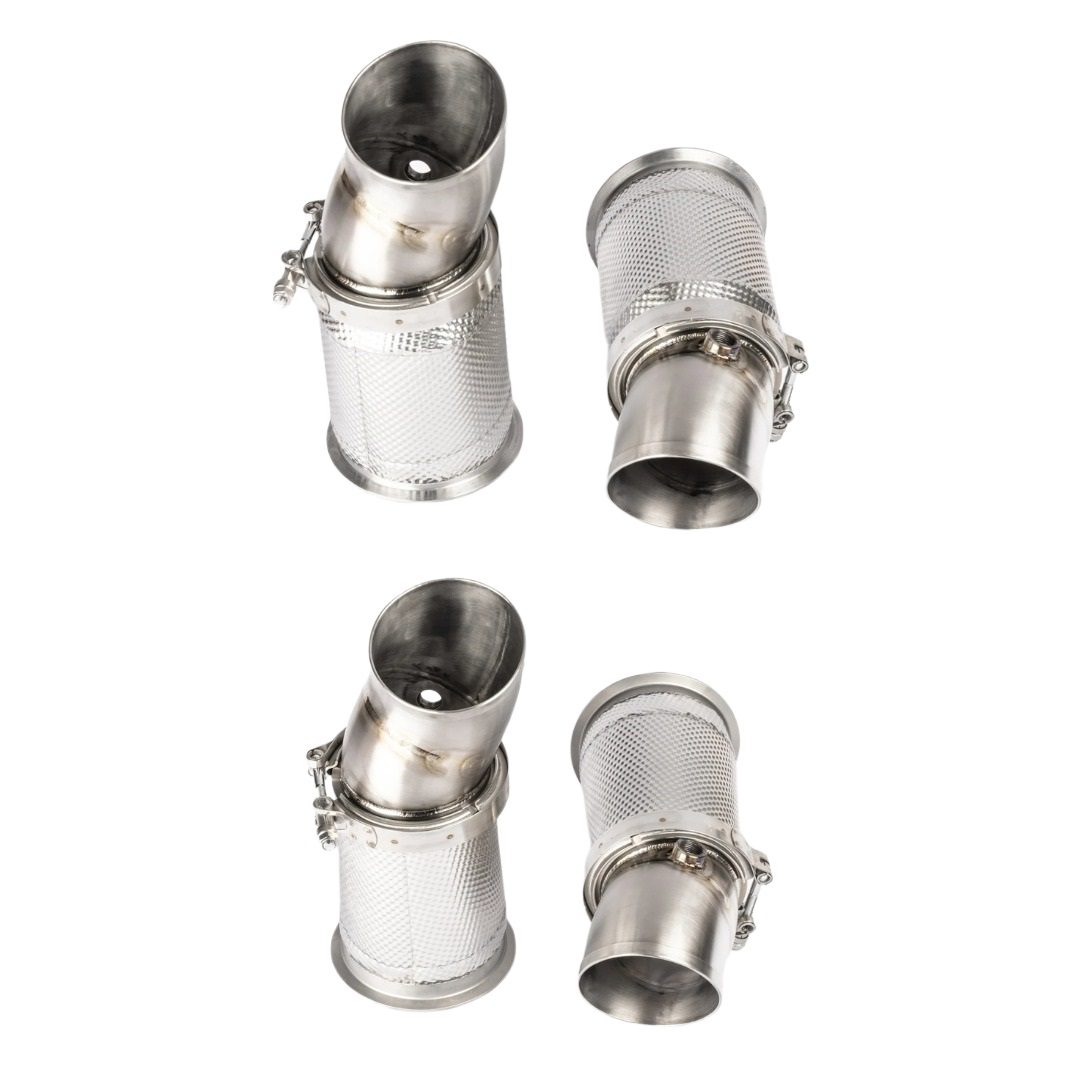 The JCR Superlight Race Silencers for the 991.2 Porsche 911 GT2 RS are high-performance, non-valved exhaust upgrades crafted from lightweight Inconel and titanium, designed to maximize power, torque, and sound while significantly reducing weight by up to 9.3kg (20.5lbs) for enhanced handling and balance. Available in two configurations, the Race Silencers feature 200cpi HJS motorsport cores for increased flow without triggering check engine lights, delivering a refined yet aggressive exhaust note, while the Silencer Deletes remove restrictions entirely for maximum performance and a bold, race-inspired sound, though they may require tuning to avoid check engine lights. Both options offer seamless OEM fitment, retain factory exhaust tips, incorporate advanced heat shielding, and deliver peak gains in the mid 30hp range, making them ideal for GT2 RS enthusiasts seeking superior performance and sound.