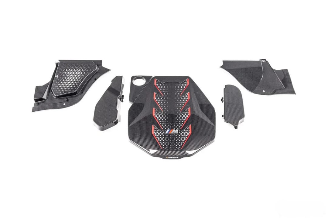 Karbonius Composites’ Carbon Engine Cover Kit is a true OEM-plus engine bay upgrade for the G90 BMW M5 sedan and G99 M5 Touring, hand-built in Spain by the artisans behind the legendary E46 M3 CSL airbox. Made from 100% pre-preg (dry) carbon fiber and autoclave-cured with integrated mounting tabs, it delivers precise fitment and a clean 2×2 twill finish in gloss or matte clear.