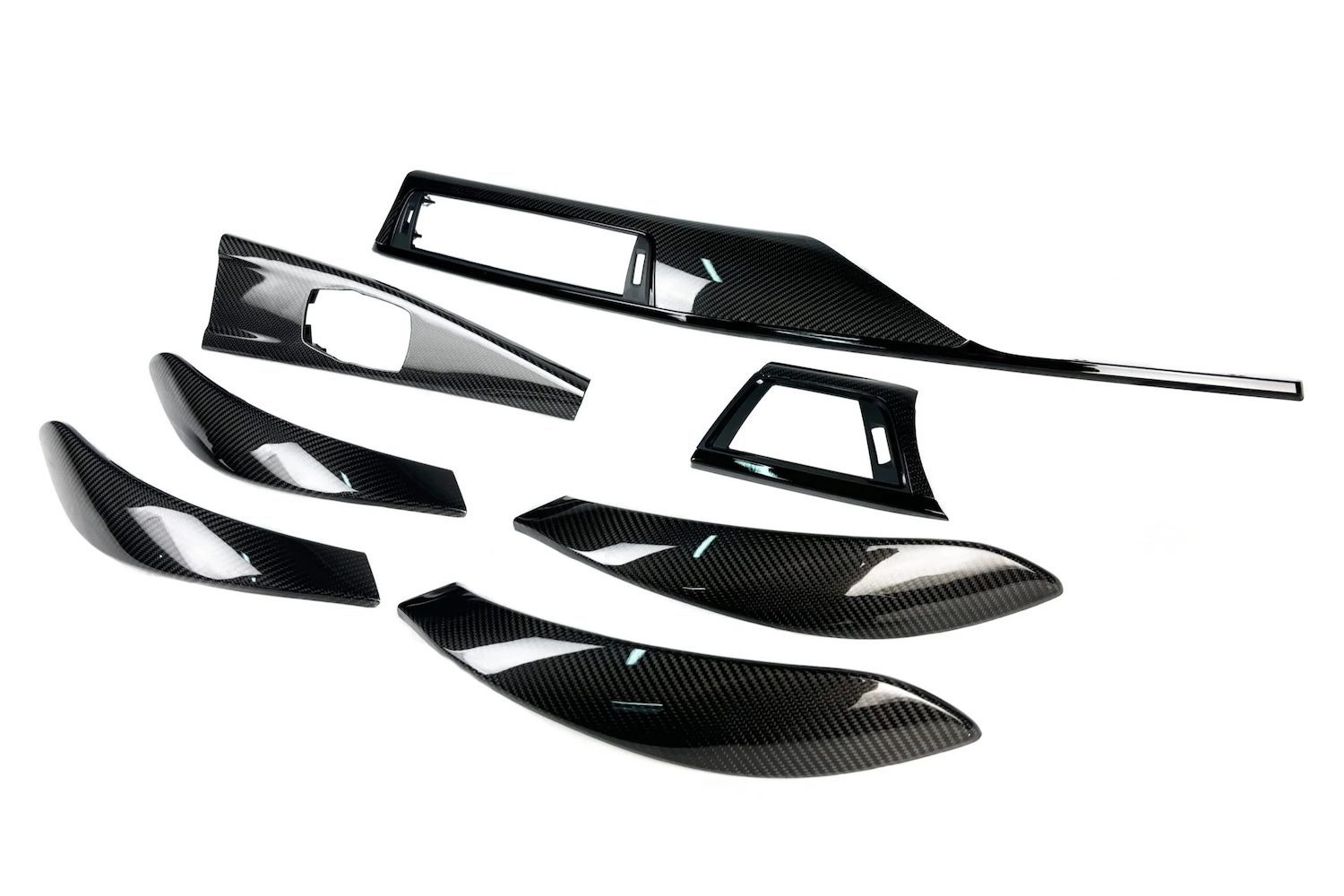 Karbonius Composites full replacement 2×2 gloss twill carbon dash trim for F80 M3 / F82 M4, built from multi-layer autoclave-cured pre-preg carbon on OEM-spec bases for perfect fit, long-term stability, and guaranteed authenticity.
