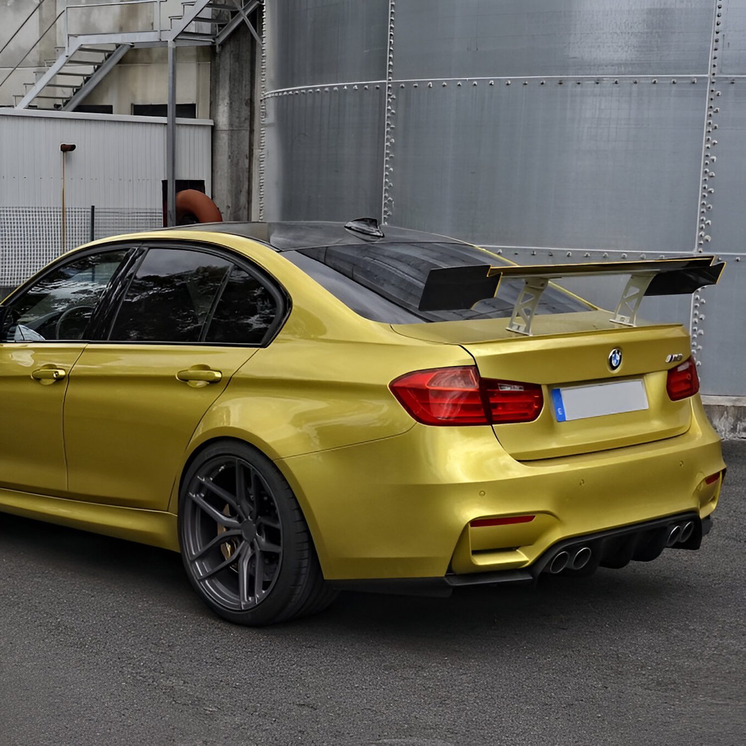 Karbonius Composites 3 kg autoclave-cured pre-preg carbon Stage 1 rear wing for F8X M3 / M4, adjustable, track-proven aero with anodized aluminum uprights; elegant street look, ISO 9001-built, individually numbered for authenticity.