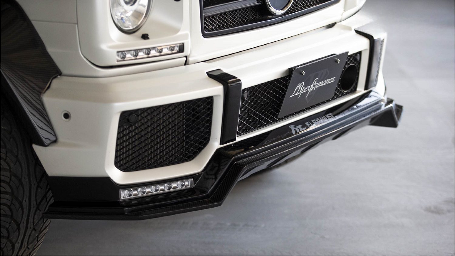 Transform the look and aerodynamics of your vehicle with the Liberty Walk LB-WORKS Front Under Spoiler, meticulously designed for the G63 AMG. Featuring integrated LED day lights and available in three high-quality materials – Fiberglass Reinforced Plastic (FRP), a Carbon Fiber/FRP blend, and Dry Carbon Fiber – this front under spoiler adds a distinctive, sporty touch to your vehicle’s design.