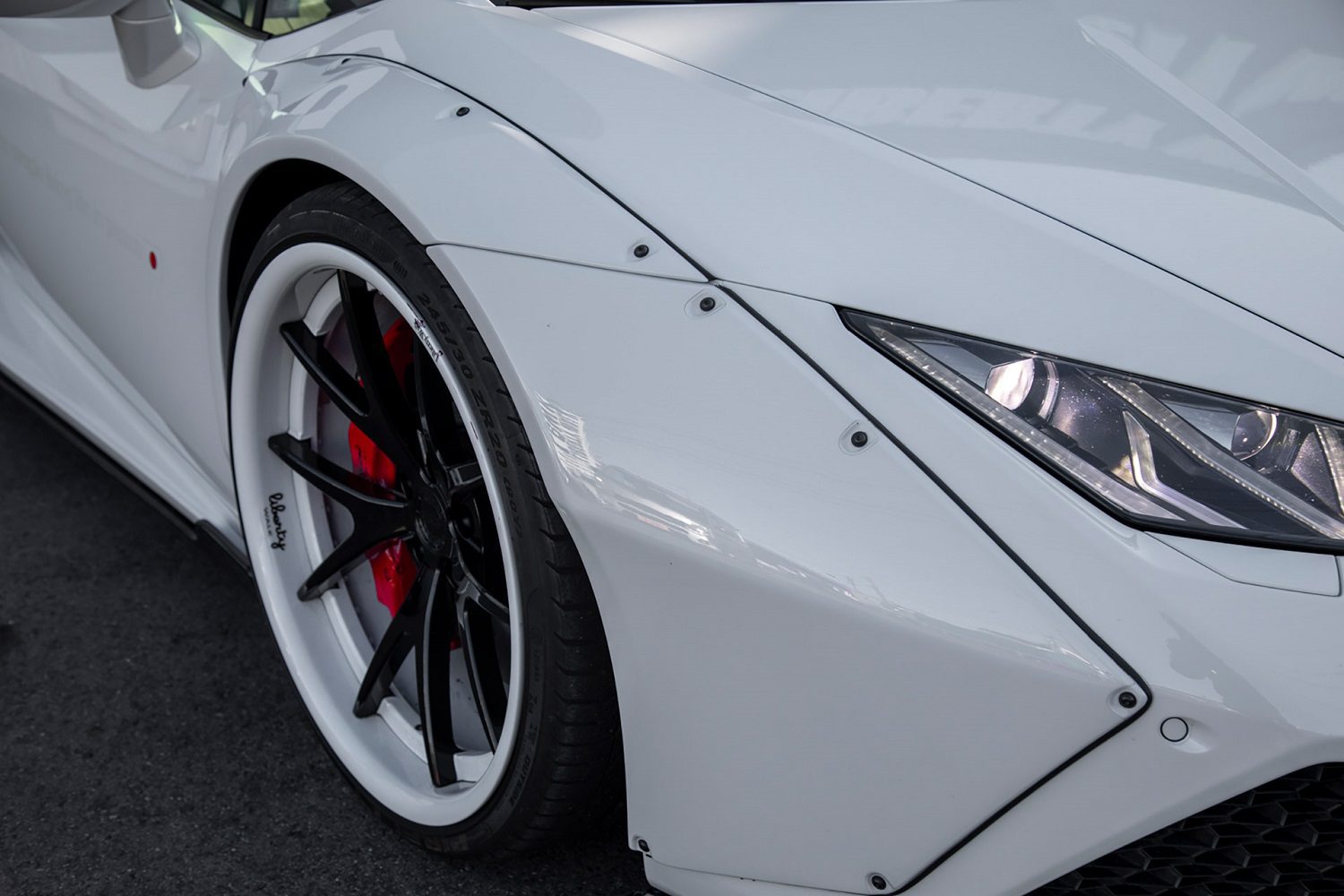 Transform your Lamborghini Huracán with the striking Liberty Walk LB-WORKS Wide Exchange Fenders, a premium aftermarket accessory designed to elevate both the visual appeal and performance of your vehicle. Specifically crafted for the Lamborghini Huracán, these exchange fenders showcase the aggressive design elements found in race cars. Made from high-quality FRP (fiberglass reinforced polymer), the Wide Exchange Fenders not only amplify your Huracán’s visual impact but also enhance aerodynamics and handling. The fenders are designed for seamless installation without any cutting of the body, ensuring a hassle-free upgrade experience.