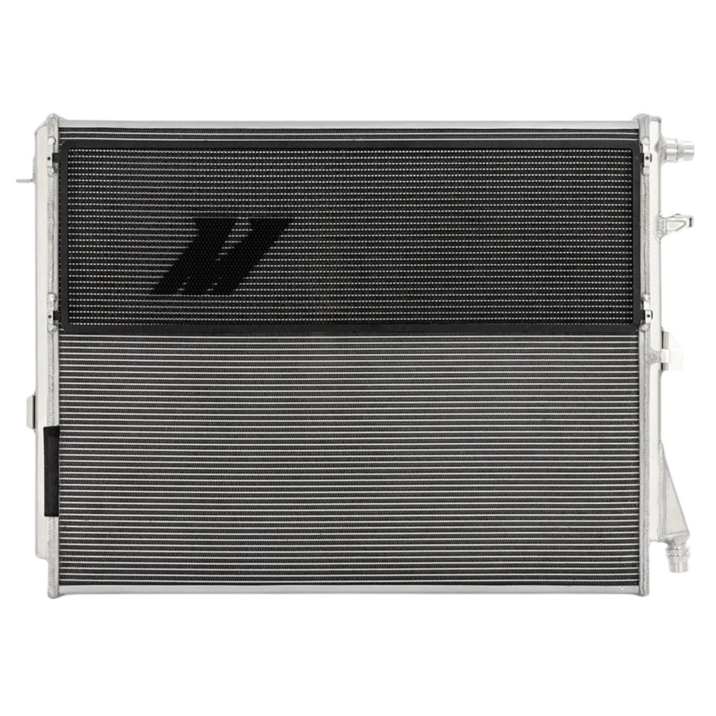 The Mishimoto Performance Heat Exchanger for the 2021+ BMW G8X M3 / M4 is engineered for a perfect fit with all other factory components, ensuring seamless integration into the vehicle. For additional protection, Mishimoto includes steel rock guards to shield the heat exchanger from debris, preventing punctured tubes or crushed fins. The Mishimoto G8X M3 / M4 performance heat exchanger is compatible with both automatic and manual transmissions. As with all Mishimoto products, this heat exchanger comes with a Mishimoto Lifetime Warranty, providing peace of mind and confidence in the investment. Upgrading the BMW G8X M3 / M4 with the Mishimoto Heat Exchanger offers a significant improvement in cooling efficiency.