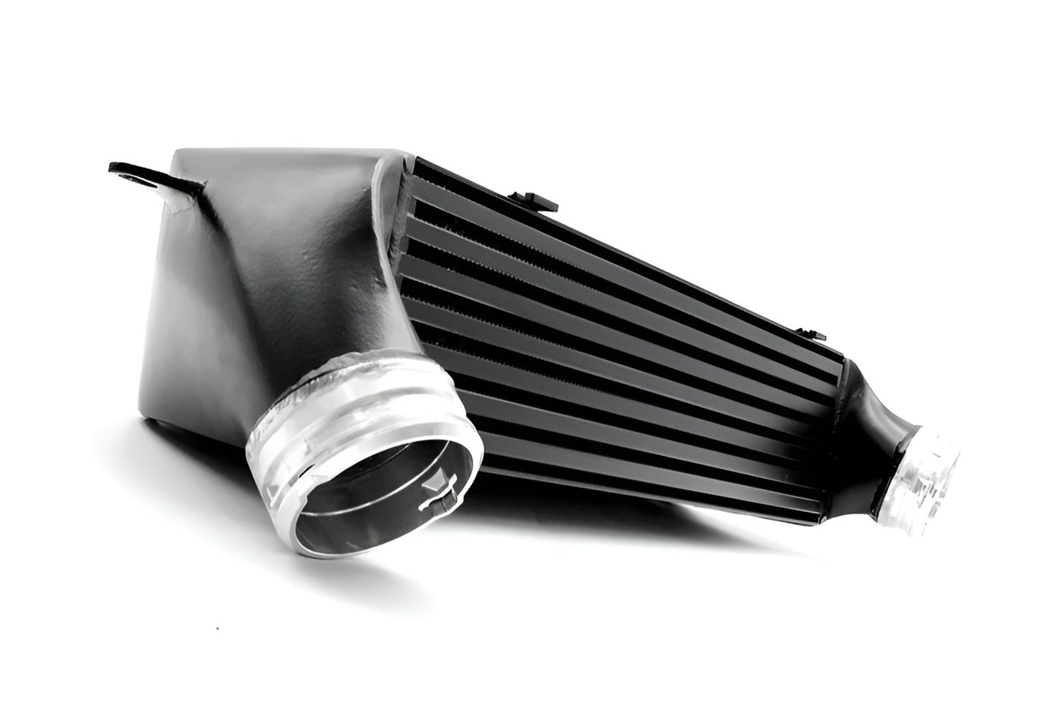 MMX Performance’s direct-fit intercooler for N54 E-chassis BMWs uses a high-efficiency bar-and-plate core with optimized cast end tanks to deliver consistent, repeatable power. With roughly 20% more core volume, it cuts intake temps by about 20°C versus OE and typically adds ~20bhp at stock boost — achieving strong cooling gains with minimal pressure loss and no added lag.