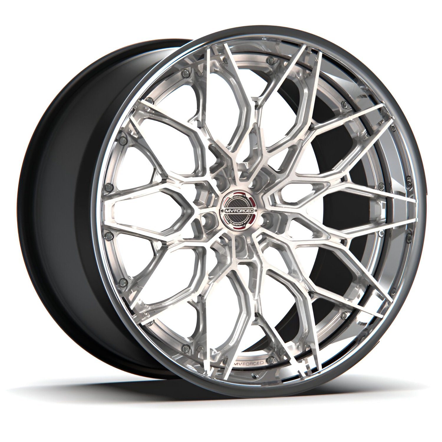 Discover the MV Forged Corsa Series C24 3-Piece Wheel, a significant innovation in the MV Forged lineup that introduces a fresh, bold design philosophy. This wheel features a standardized profile-undercut at the hub, adding remarkable depth and complex detailing that differentiates it from other models. With its crisp corners, distinct angles, and bold cuts, the C24 presents a refined spoke silhouette that is not only eye-catching but also surpasses rigorous safety requirements. These advanced design elements are combined to create a wheel that excels in both aesthetic appeal and durability, making it perfect for automotive enthusiasts who seek the utmost in style and safety.