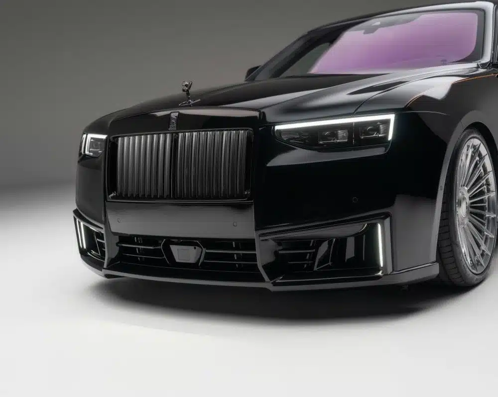 The NOVITEC Front Bumper with integrated LEDs for the F160 Rolls-Royce Ghost II Series II redefines the vehicle’s presence with a bolder, more dynamic appearance while maintaining the marque’s signature elegance. Crafted from a premium mix of primed fiberglass and carbon fiber, the bumper offers a perfect balance of lightweight strength and precision fitment. The integrated vertical LED daytime running lights enhance both visibility and modern styling, giving the Ghost a more commanding front profile. Designed to seamlessly replace the factory bumper, this upgrade delivers OEM-level integration with an elevated, performance-inspired aesthetic suitable for both standard and Black Badge models.
